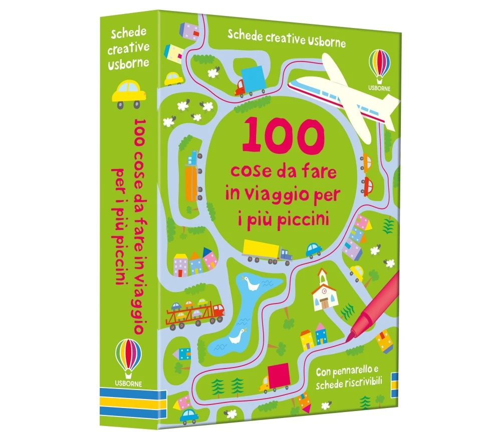 Un set di 50 schede con 100 giochini, rompicapi e indovinelli per intrattenere i bimbi nei lunghi viaggi. Schede facilmente cancellabili e riscrivibili. Pennarello cancellabile a secco incluso nella confezione.