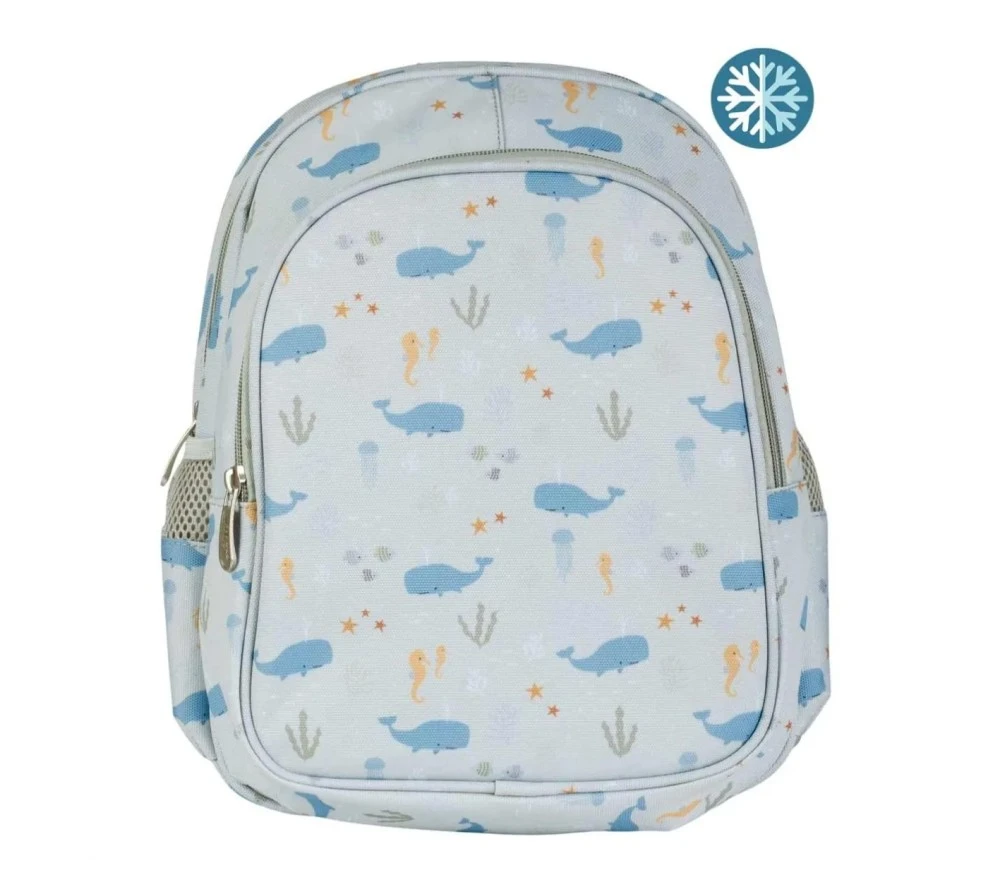 Un allegro zainetto che ci porta nel mondo marino! Perfetto per la scuola, i viaggi ed il tempo libero, rallegra ogni giornata! Lo zainetto è robusto ed ha due scompartimenti, due tasche laterali e spallacci regolabili. Lo zainetto è dotato di tasca termica, perfetto per mantenere perfetti il pranzo o la merenda! Dimensioni 27 x 32 x 19 cm.