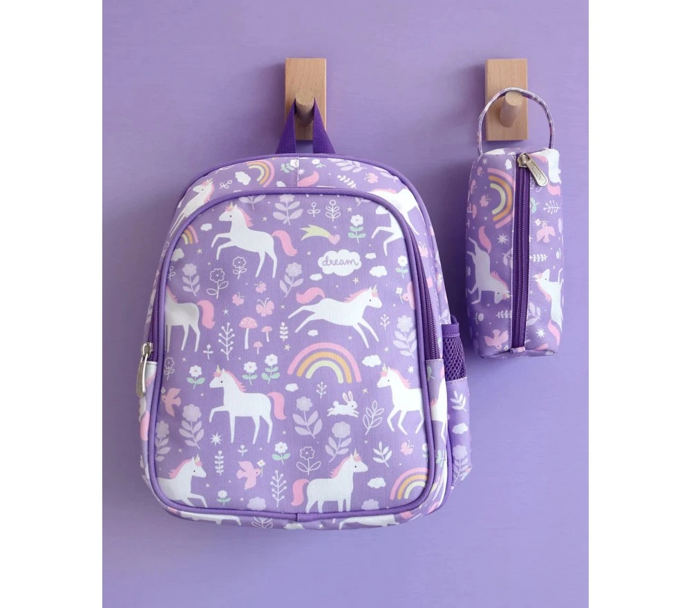 Un originale zainetto con una simpatica stampa a tema unicorni, su fondo violetto! Perfetto per la scuola, i viaggi ed il tempo libero, rallegra ogni giornata!