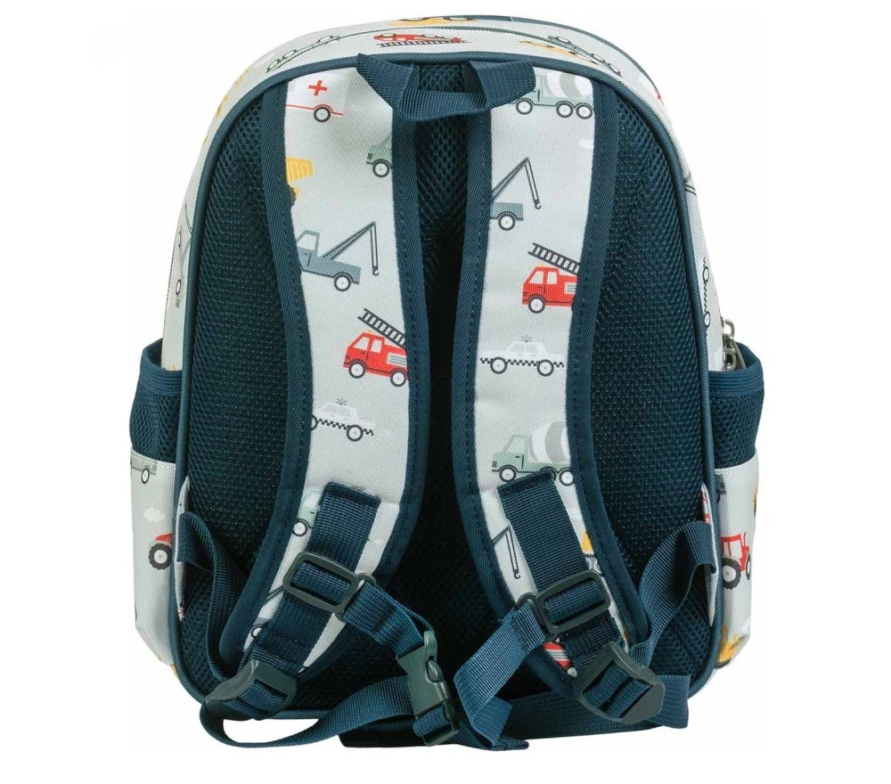 Un originale zainetto con una vivace stampa di veicoli! Perfetto per la scuola, i viaggi ed il tempo libero, rallegra ogni giornata!