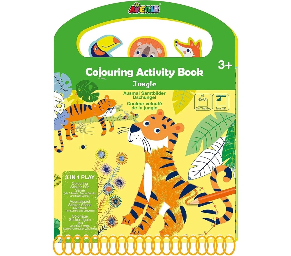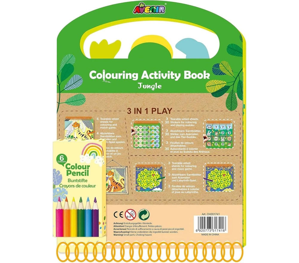 3 attività in un solo gioco: attività di coloriage con bordi in velluto colorato, tanti stickers e gioco del sudoku (adatto ai bimbi!), gioco del labirinto per stimolare la mente.