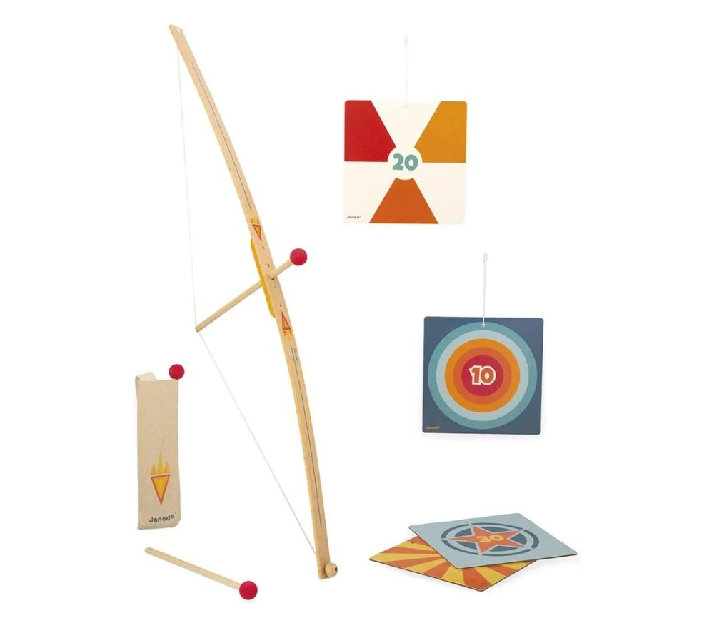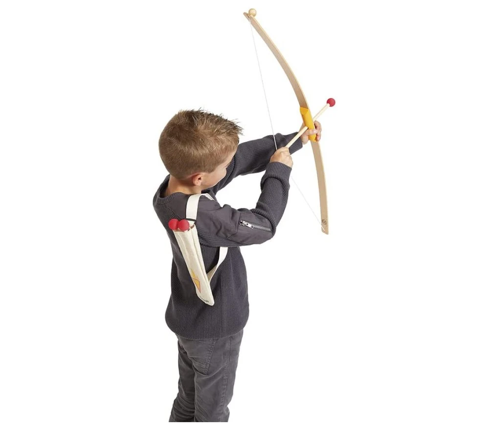 Un robusto arco in legno corredato da 3 frecce con punta in gommapiuma, per vivere infinite avventure. Nel sesono compresi una faretra in stoffa e 4 bersagli da appendere. Realizzato con materiali FSC.