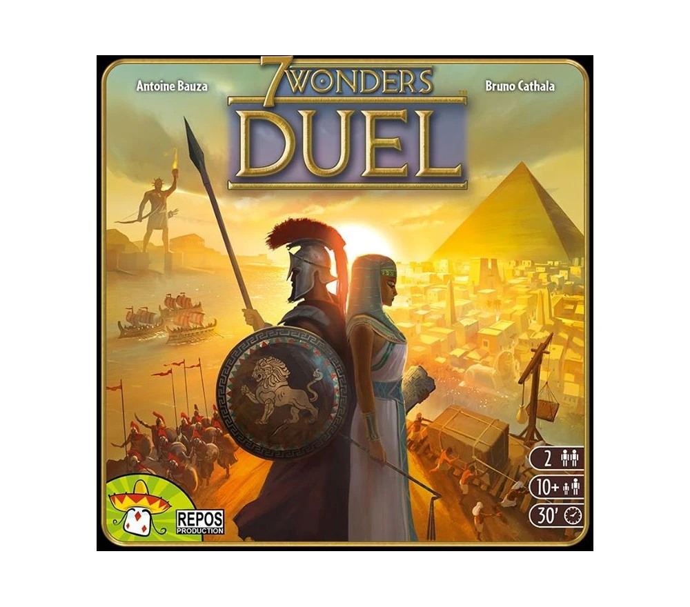 Sviluppa la tua scienza e il tuo esercito, innalza edifici prestigiosi e guida la tua civiltà alla vittoria! 7 Wonders Duel è un gioco completo ambientato nel mondo di 7 Wonders e concepito specificamente per 2 giocatori. 7 Wonders Duel offre un nuovo sistema di pesca delle carte, 3 condizioni di vittoria, progresso scientifico, un sistema militare originale e 12 Meraviglie da combinare tra loro per giocare partite avvincenti e sempre nuove.