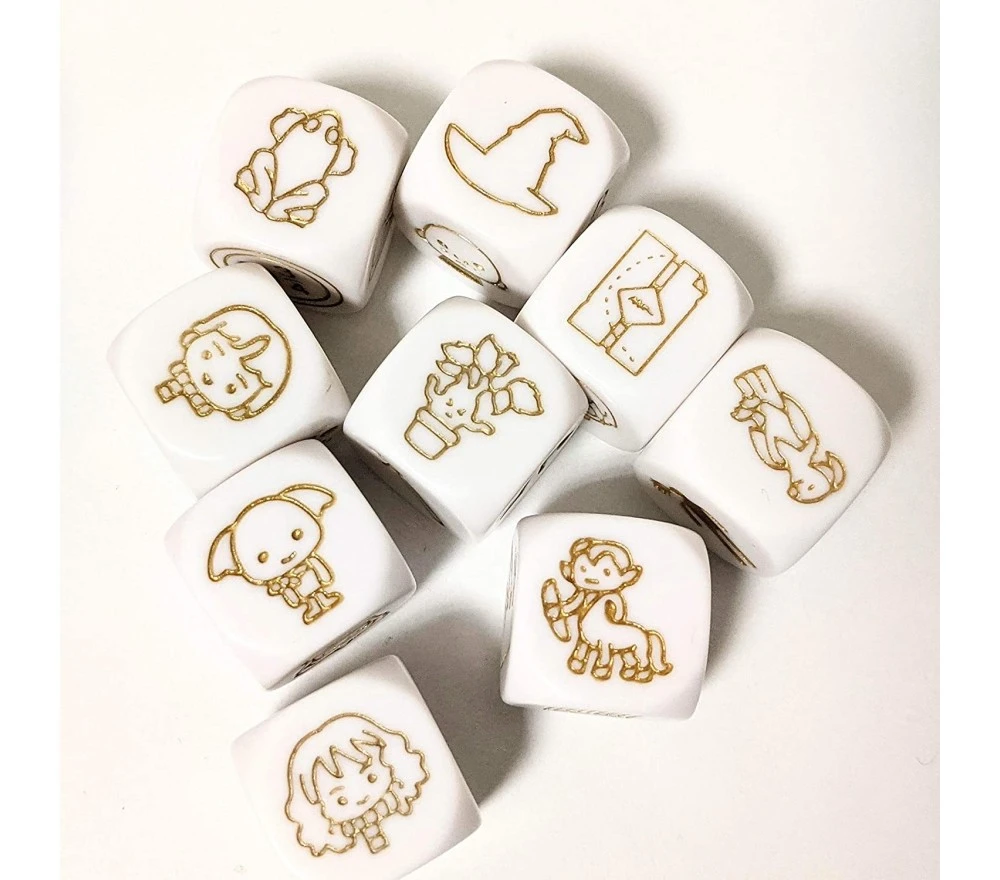 Lanciate i nove cubi e usate le immagini per creare una storia. La vostra sarà una storia breve ma intensa o una grande saga? Vale una sola regola: non esistono risposte sbagliate! Racconti della buonanotte, trame in evoluzione, narrazioni orali, ispirazioni creative, approcci fantasiosi… gli utilizzi di questi originali dadi sono infiniti!