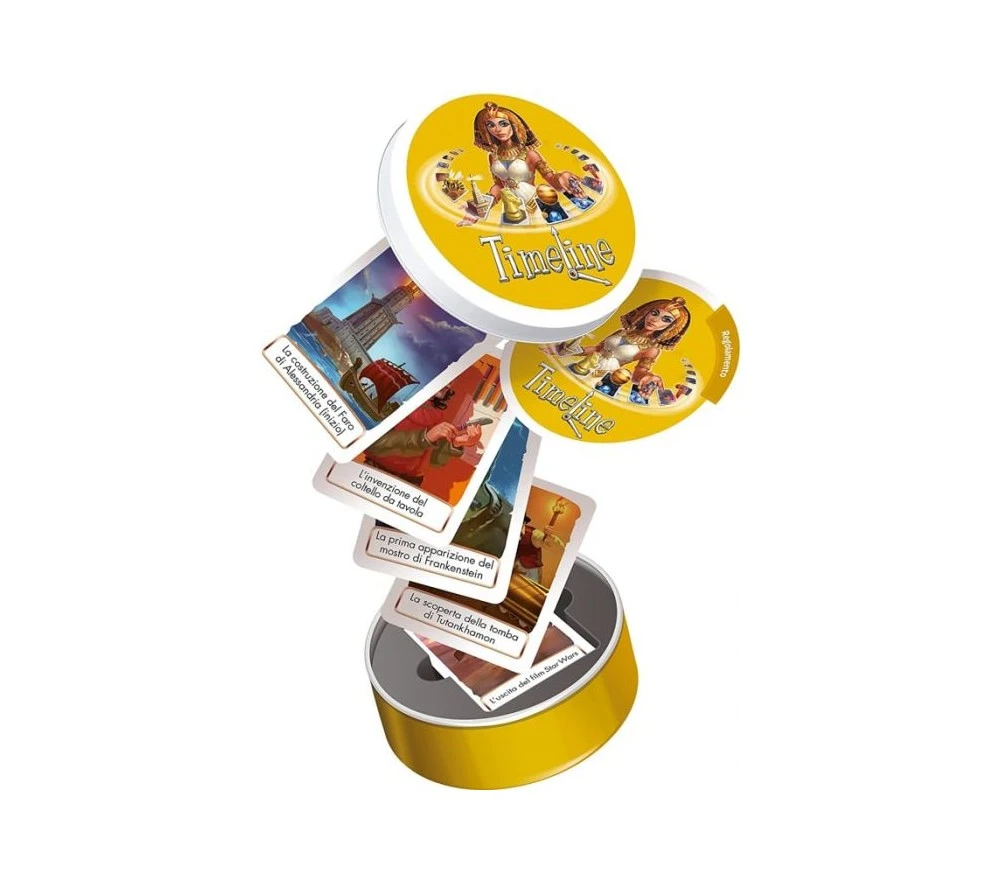 Questa edizione di Timeline in formato compatto ed ecosostenibile vi consentirà di portare in giro questo semplice ed accattivante gioco di quiz temporali in modo da poterlo giocare in qualsiasi momento e qualsiasi circostanza!