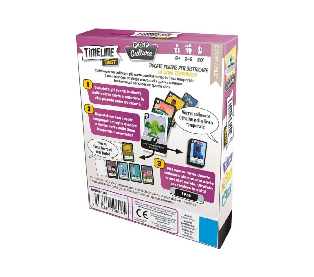 Collaborate per collocare più carte possibili lungo la linea temporale. Comunicazione, strategia e lavoro di squadra saranno fondamentali per superare questa sfida!
