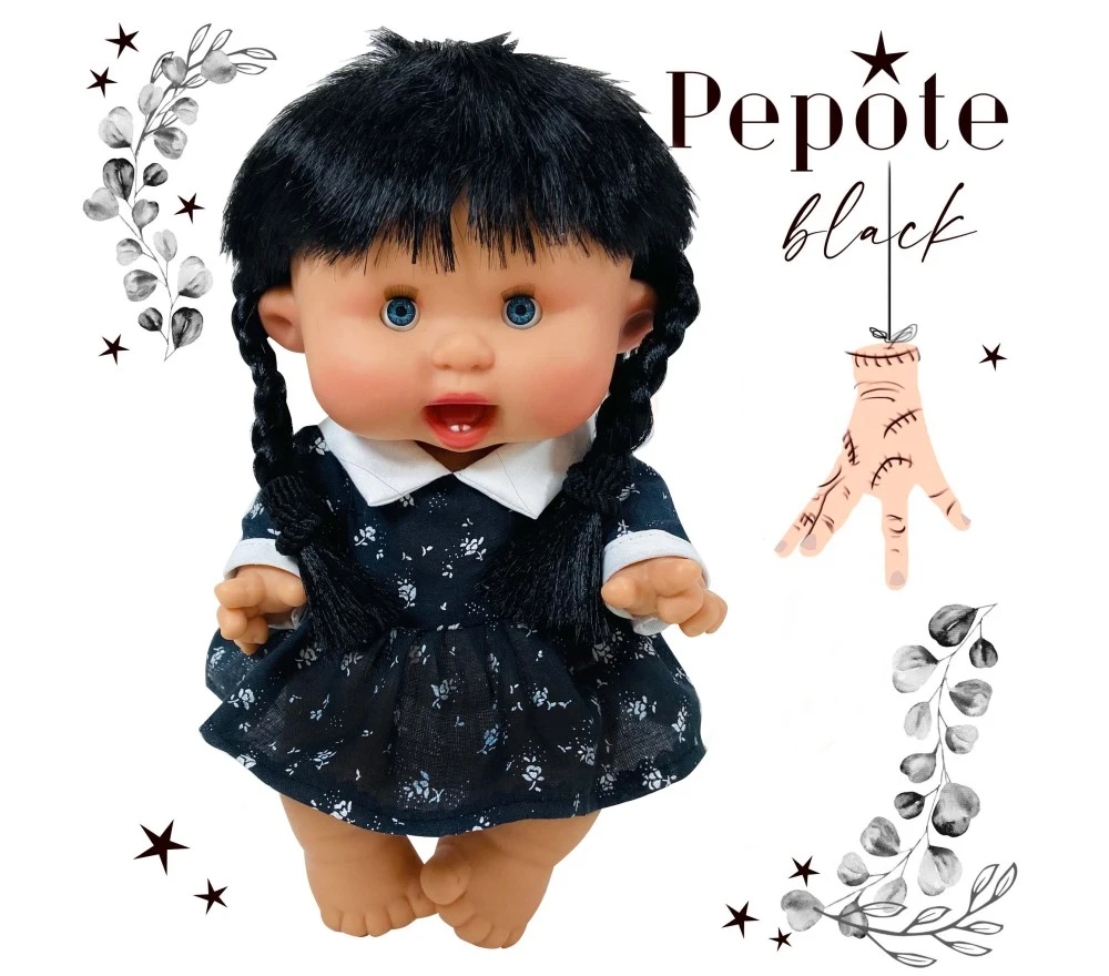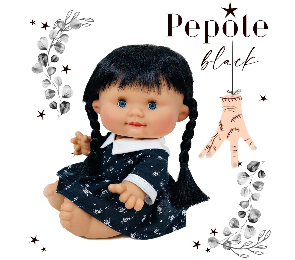 Le Pepotes Black sono una versione speciale, omaggio a Mercoledì (Wednesday) Addams: frangetta, trecce nere e vestito nero… irresistibilmente dark!
