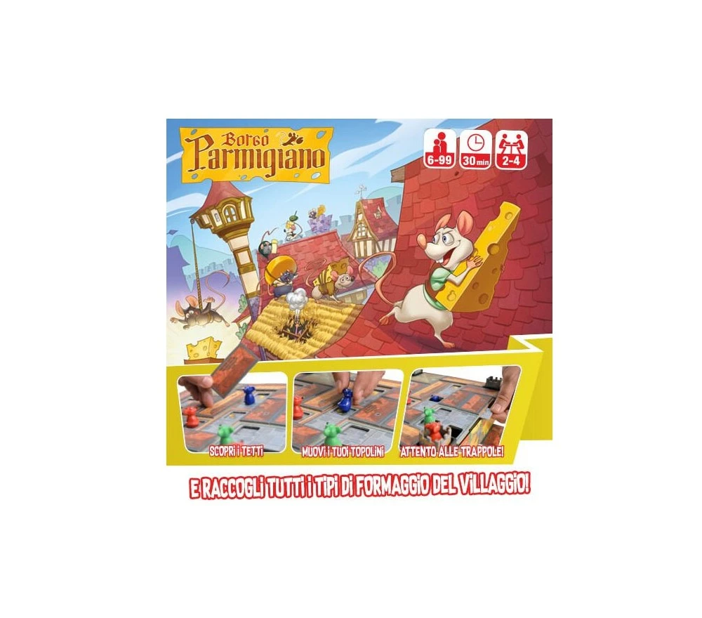 Che paradiso per un topo vivere a Borgo Parmigiano! Intrufolatevi nelle case per trovare ricchi TESORI: stuzzichini per l’aperitivo, fette di gorgonzola e gustose forme di cheddar. Ma non è tutto formaggio quel che profuma! Attenti alle TRAPPOLE! Pronti a fare scorta di formaggio?