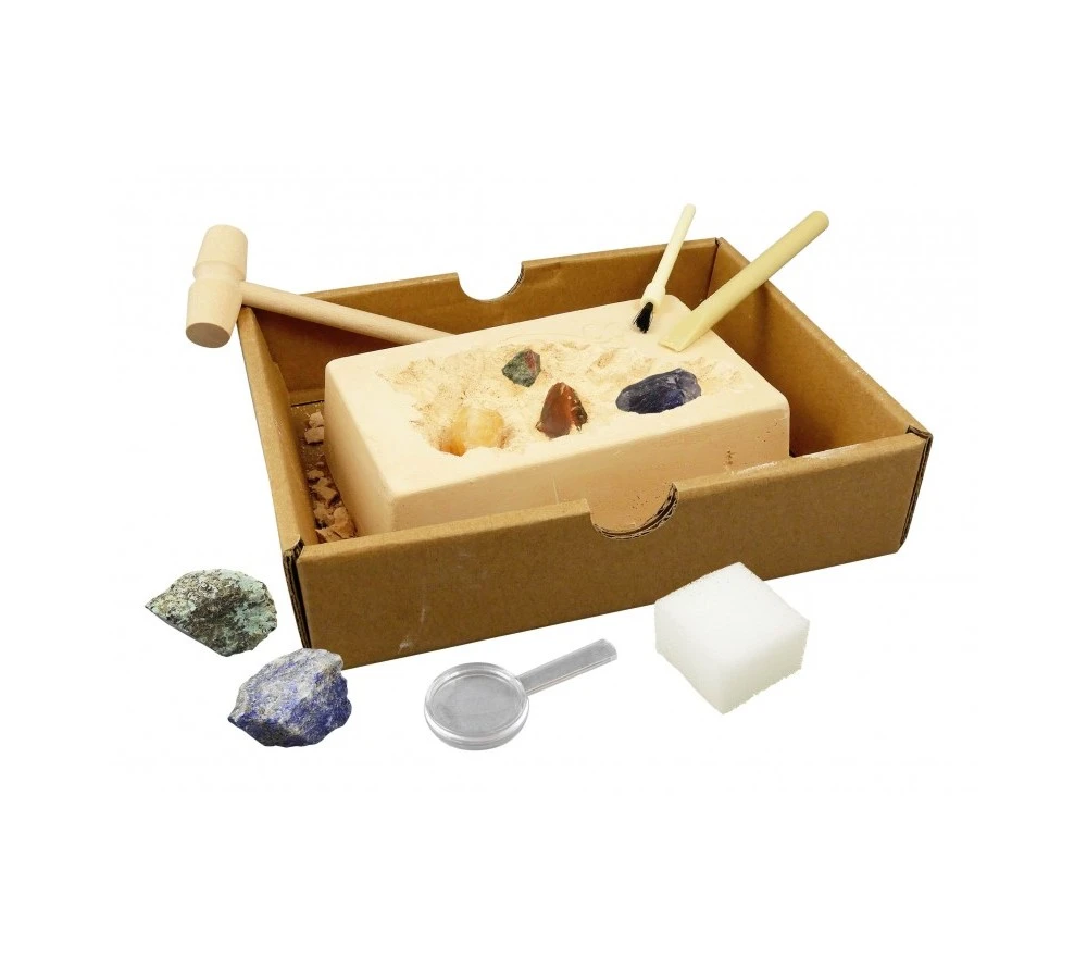 Un originale set da scavare per trovare 7 vere pietre, tra cui quarzo, ossidiana, turchese e agata da osservare e scoprire, grazie anche alla lente d’ingrandimento in dotazione. La confezione contiene tutto il necessario e un vassoietto per scavare senza sporcare! Da 8 anni.