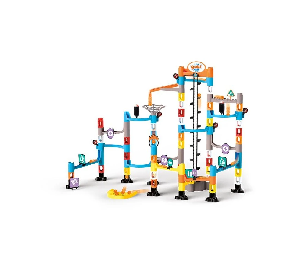 Un divertentissima pista delle biglie da assemblare in diverse configurazioni, per ore di divertimento! Con luci e suoni e un ascensore alto ben 60 cm a due velocità. Compatibile con altre piste Formula di Buki. Istruzioni incluse.