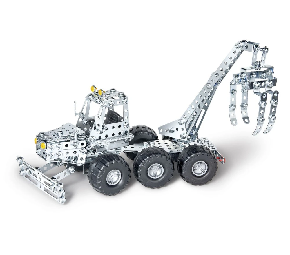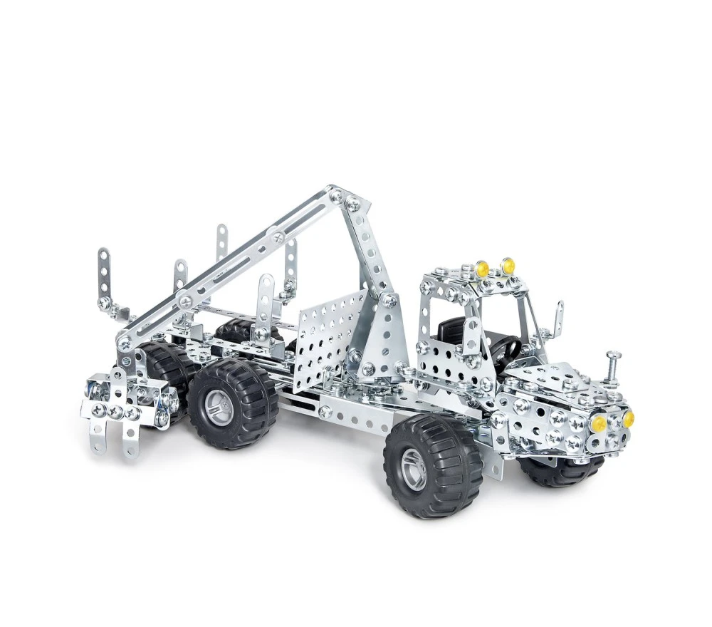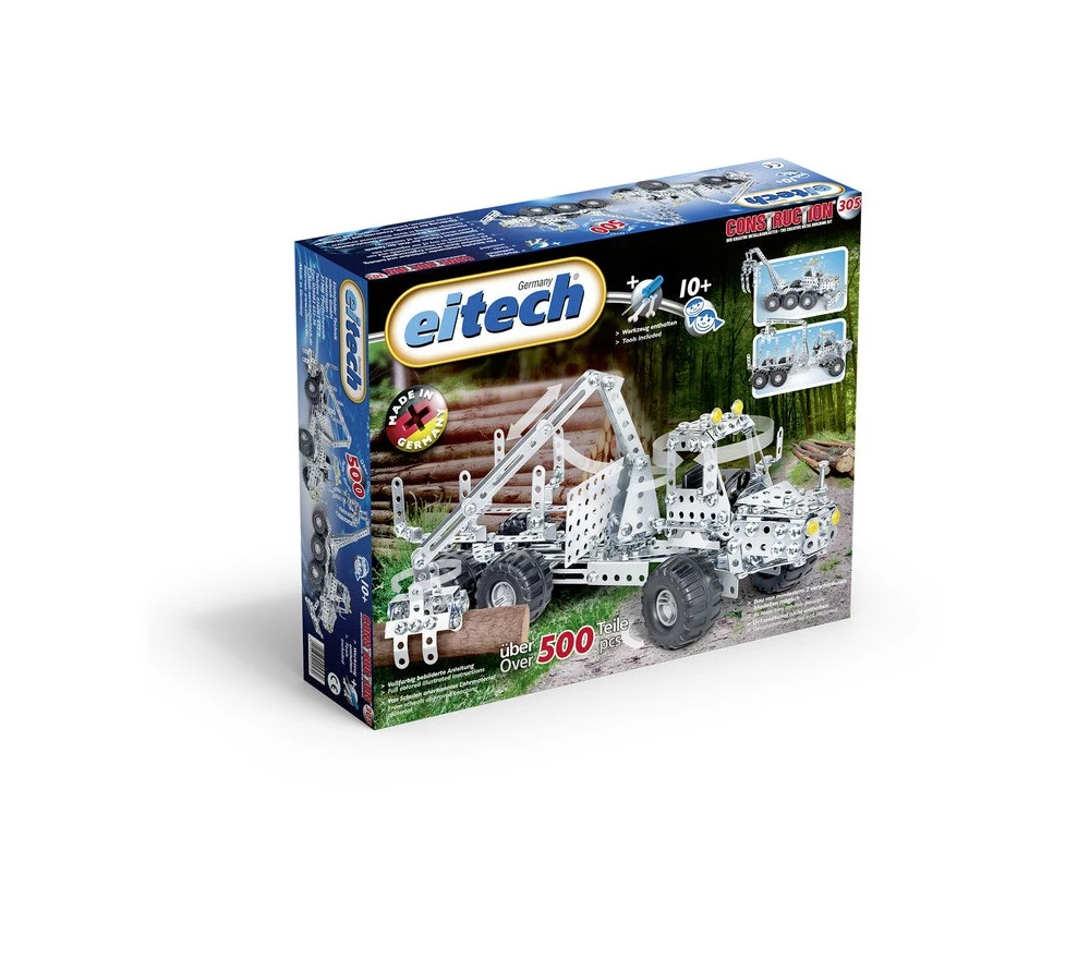 Un kit di costruzioni in acciaio del marchio Eitech per costruire un veicolo forestale per il trasporto dei tronchi con meccanica in movimento. Il kit contiene oltr 500 pezzi e tutti gli attrezzi necessari. La confezione contiene le istruzioni per montare due varianti del modello, ma con la fantasia potrai costruire tutto quello che ti viene in mente! Da 10 anni in su.