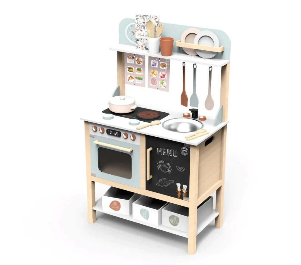 Questa cucina per bambini è realizzata in solido legno FSC.