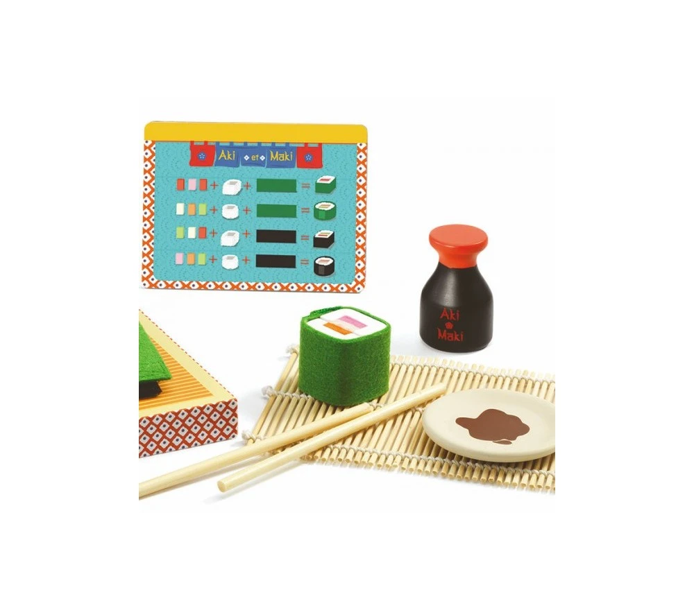 Un originale set per sushi in legno. E’ possibile comporre i bocconcini secondo il menù o seguendo la propria ispirazione. Da 4 anni in su.