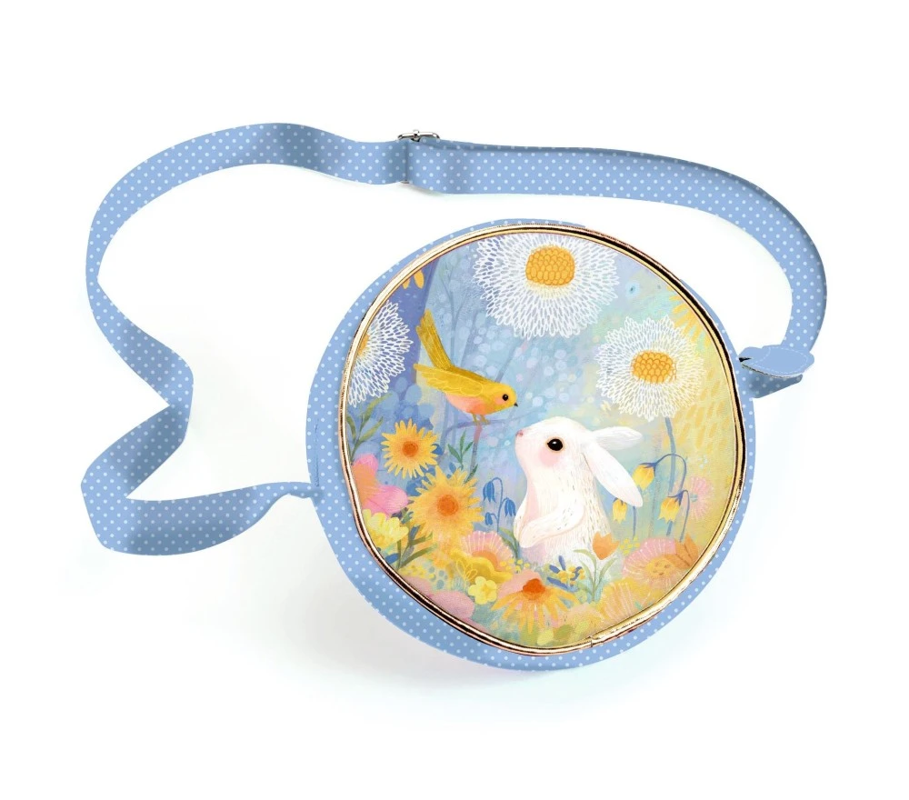 Una borsetta elegante e dal design ricercato, con una sognante illustrazione di un coniglio. Chiusa da una zip, ha una comoda tracollina regolabile.