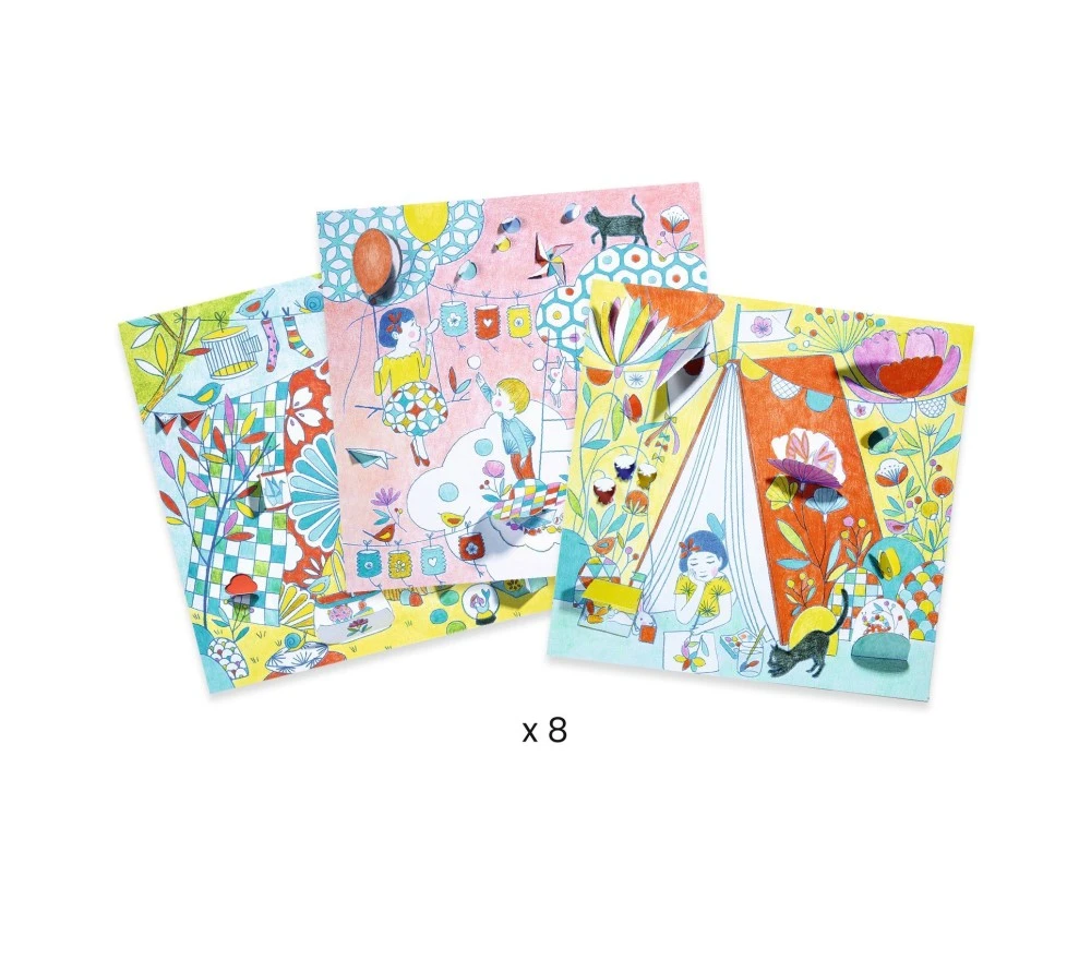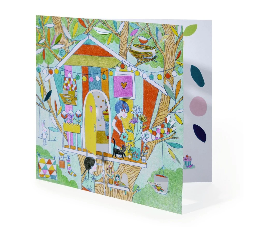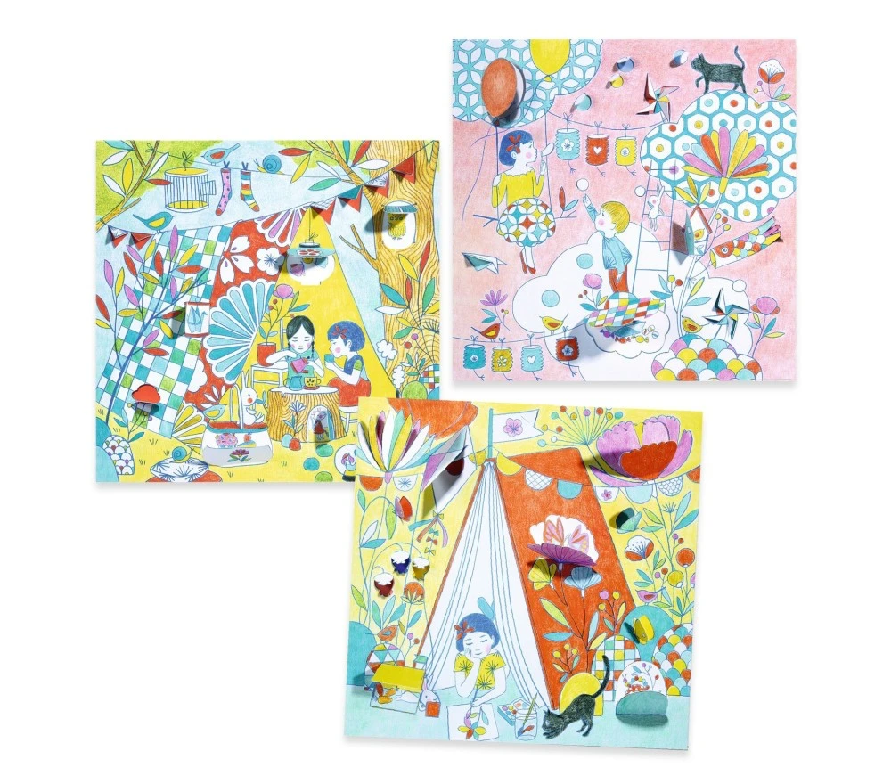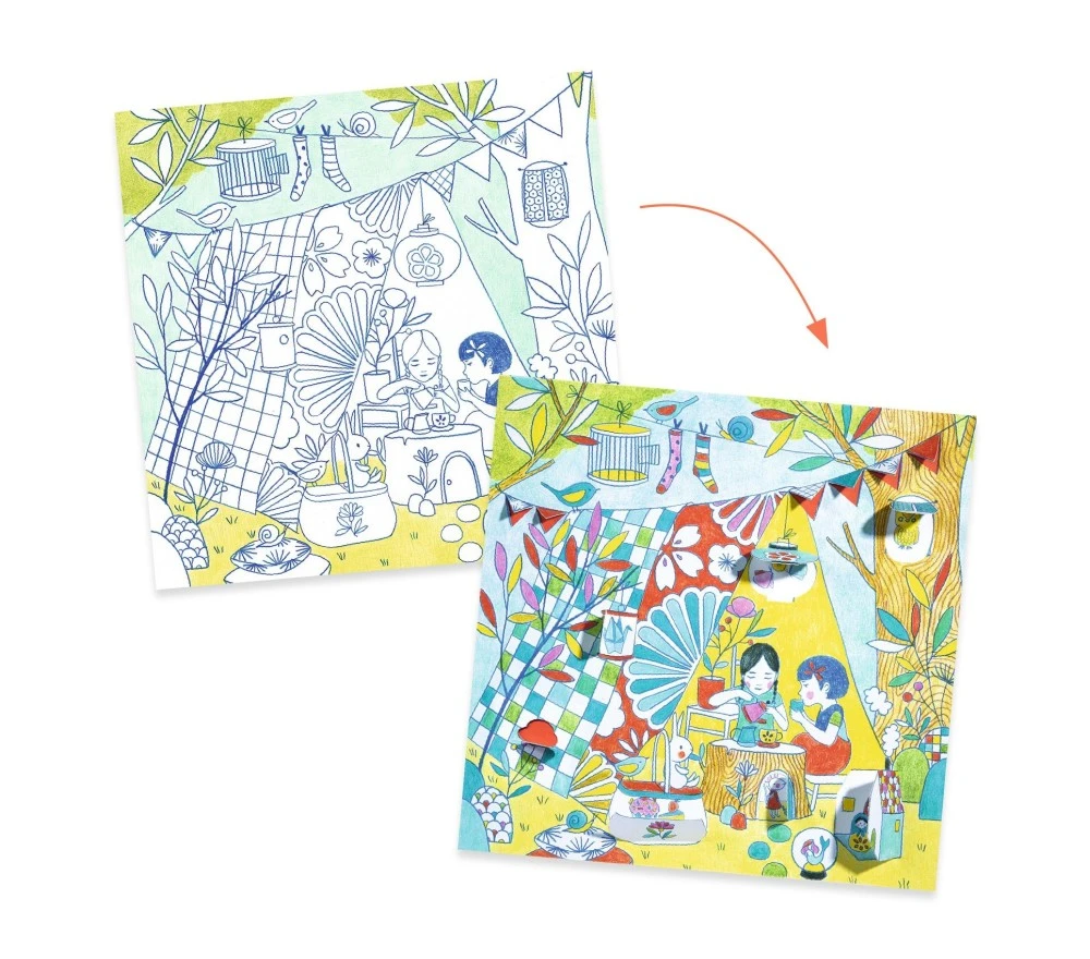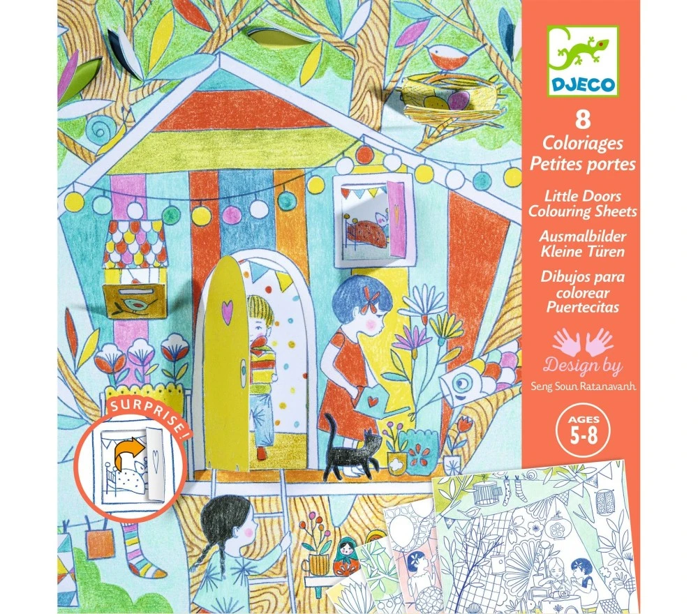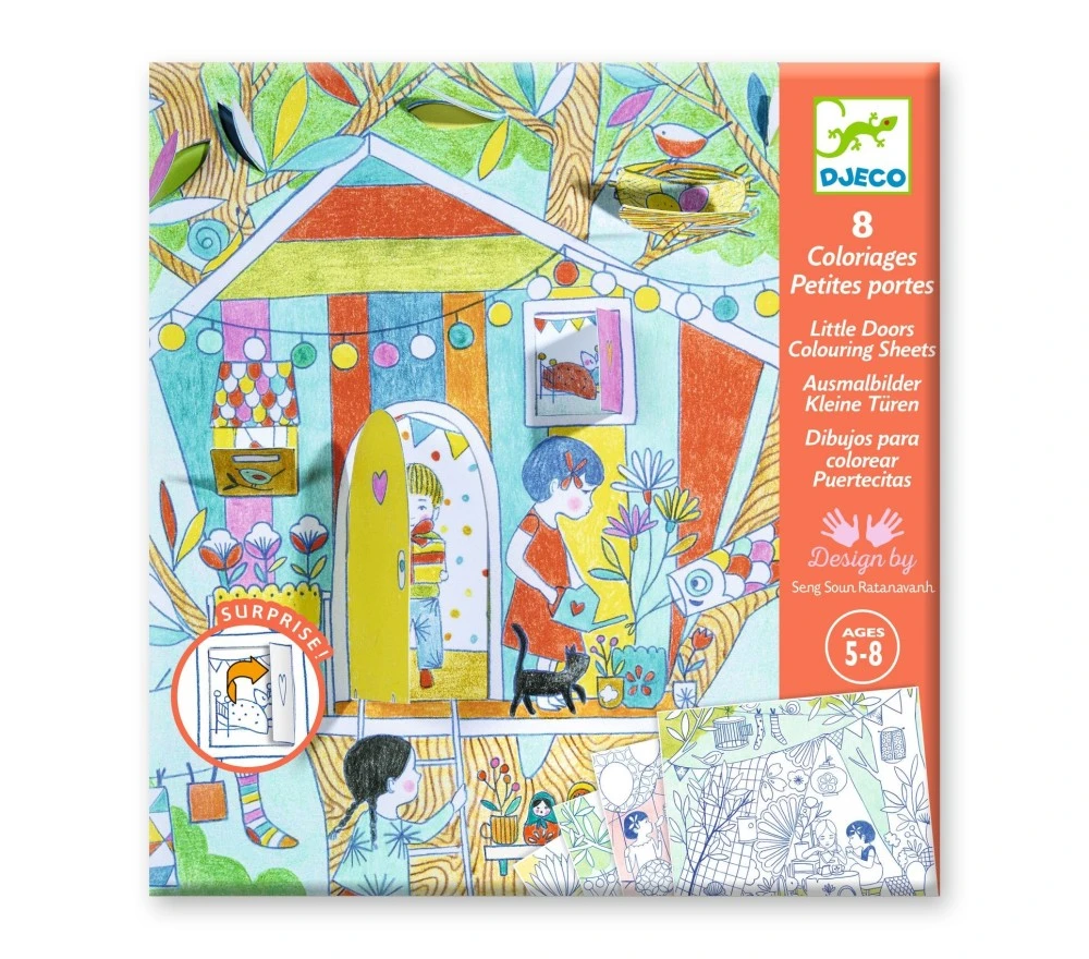Una simpatica idea creativa: 8 splendide illustrazioni tutte da colorare, con delle finestrelle da sollevare per scoprire sotto altri dettagli nascosti.
