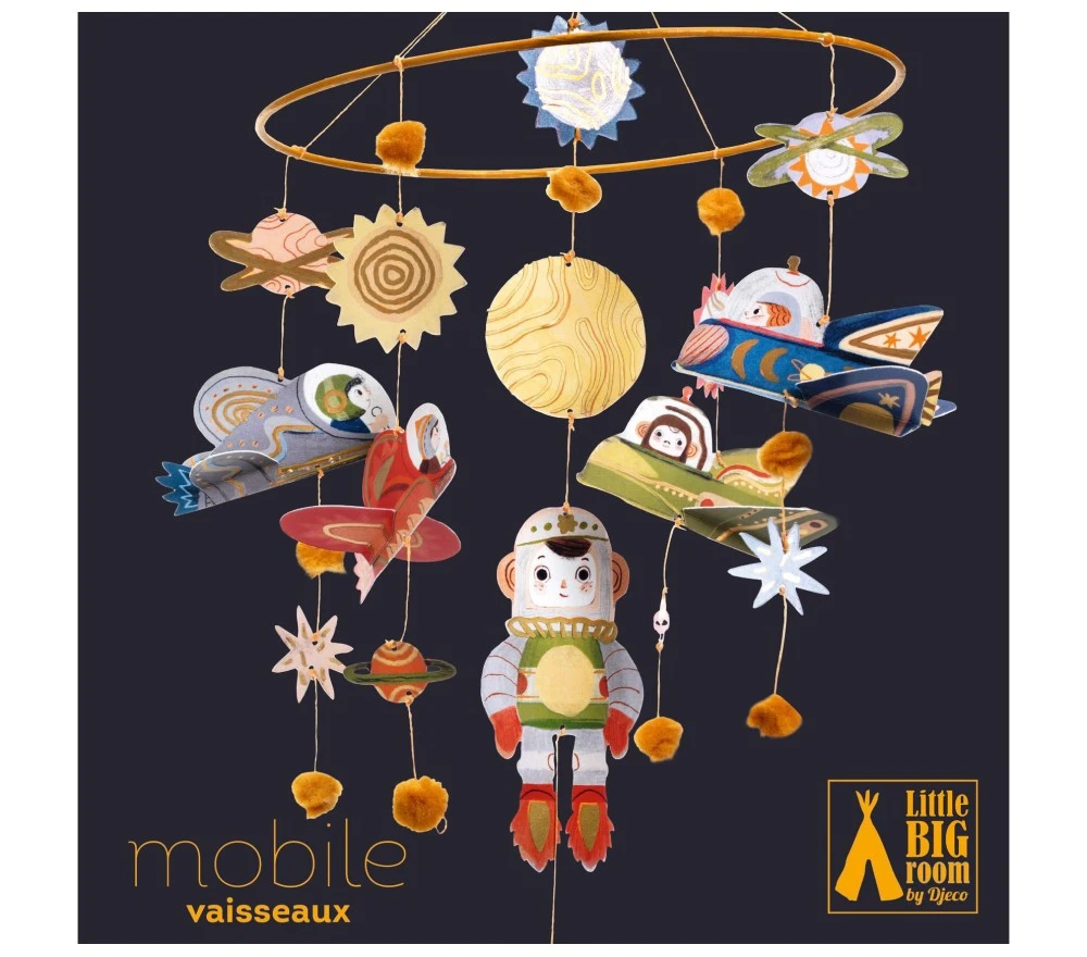 Basta un alito di vento per far danzare questa coloratissima giostrina a tema astronauti e spazio. Preassemblata, è un’idea regalo per una cameretta… ma anche per arredare qualsiasi stanza di casa con un tocco grazioso ed originale.