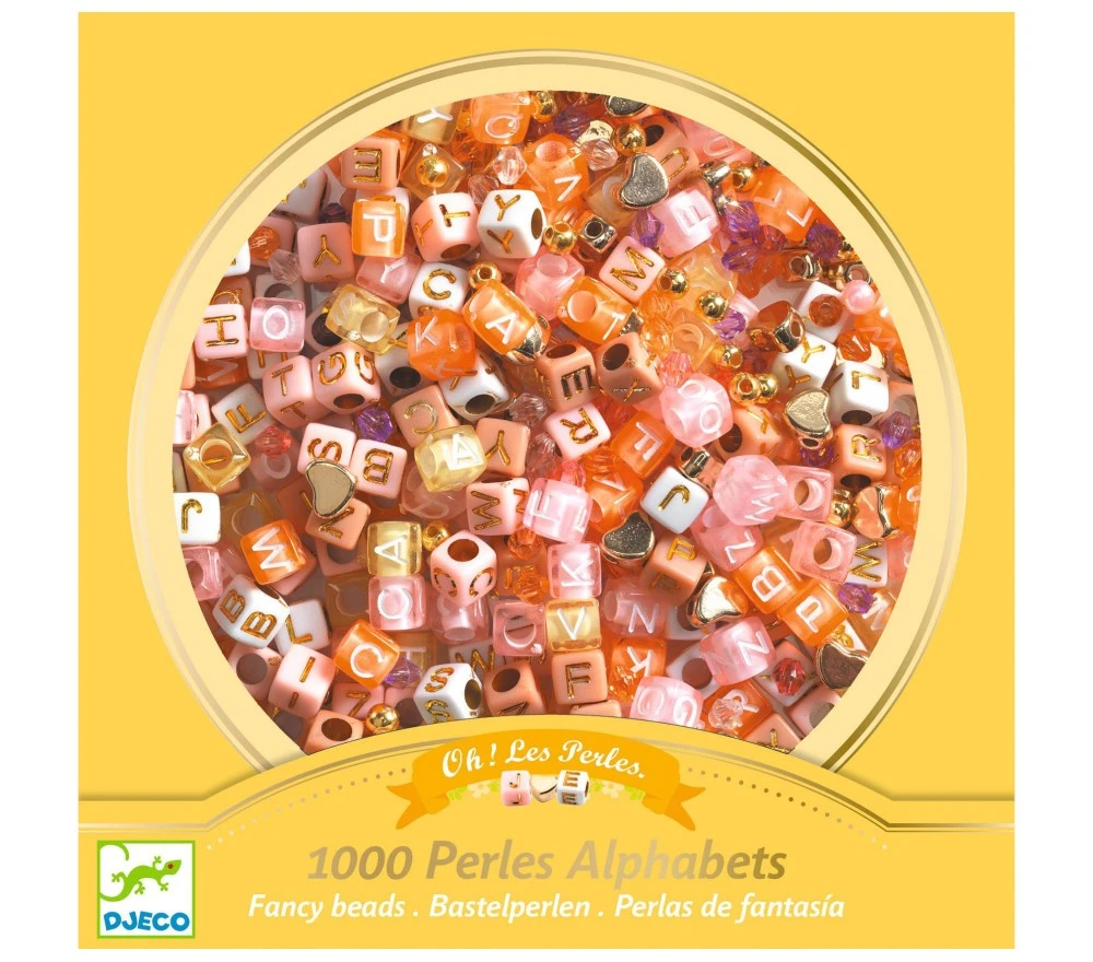 La confezione comprende 1000 perle miste tra cubetti con lettere e altre perline, due fili elastici (da 5 metri) e un ago per infilare facilmente le perle più piccole.