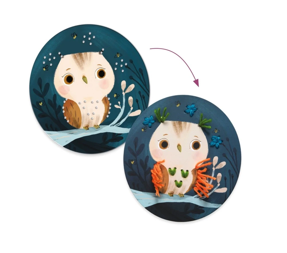 Contenuto: 4 illustrazioni da ricamare in cartone spesso, già pre- forati, 20 fili di 50 cm di lana in 5 colori, 1 ago in plastica, sicuro e maneggevole, 1 paio di forbici, 1 libretto di istruzioni.