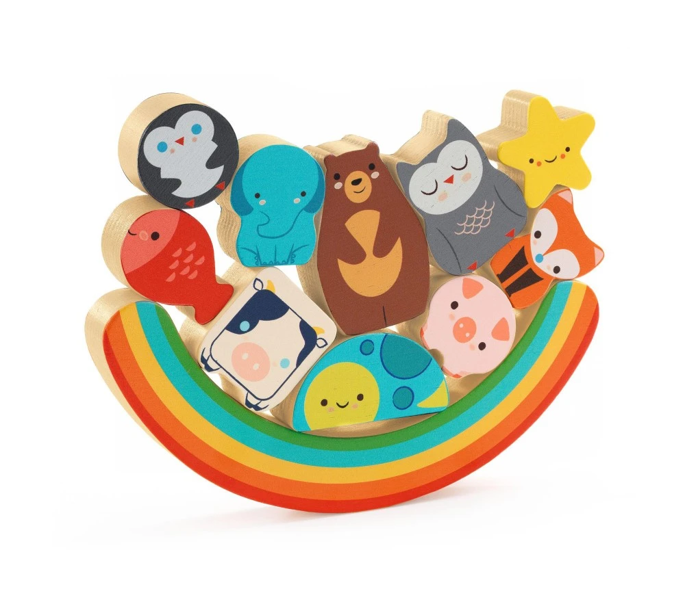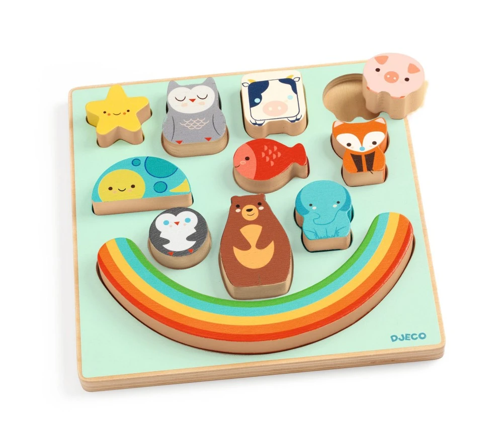 E’ possibile infatti non solo incastrare gli elementi al posto giusto sul tabellone, ma utilizzarli per affinare la motricità fine e la pazienza, impilando i vari elementi sull’arcobaleno.