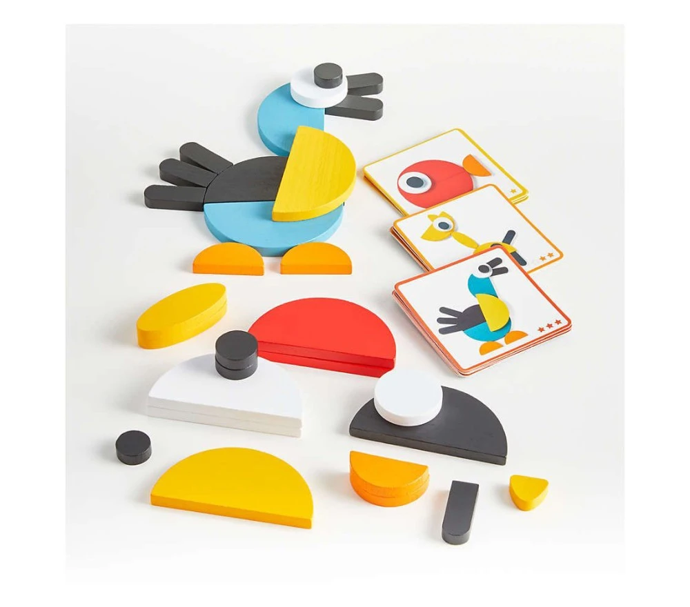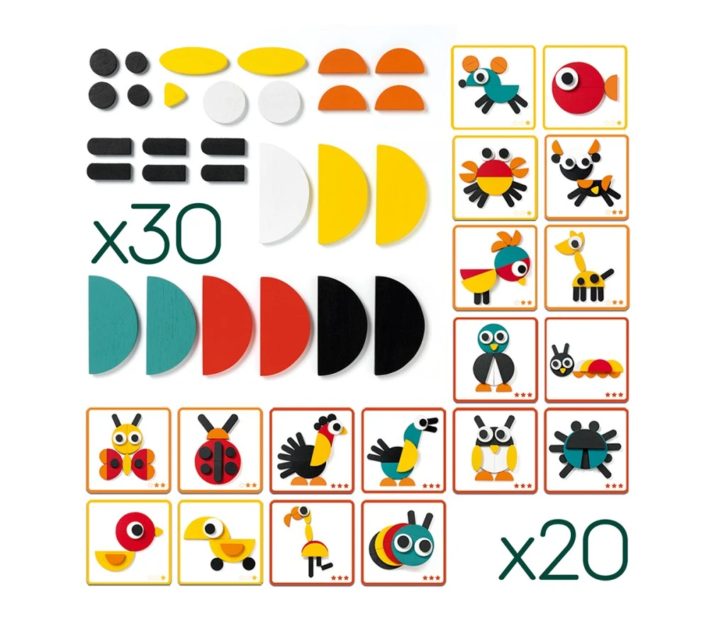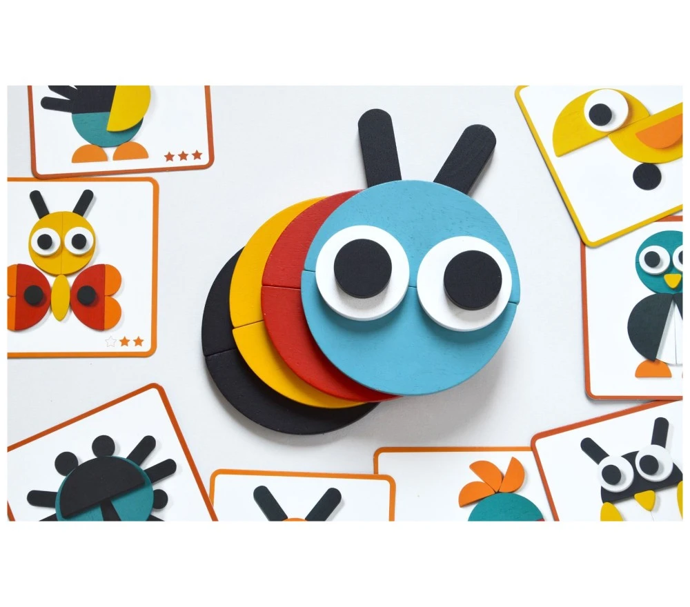 Un originale gioco dall’alto valore educativo in cui i bambini creeranno dei buffi animaletti utilizzando i pezzi di legno e seguendo le illustrazioni. Le card presentano vari livelli di difficoltà. I bimbi impareranno a riconoscere le forme e a posizionarle nello spezio, affinando motricità fine e logica. Può essere utilizzato anche per un libero gioco di costruzioni con cui far galoppare la fantasia!