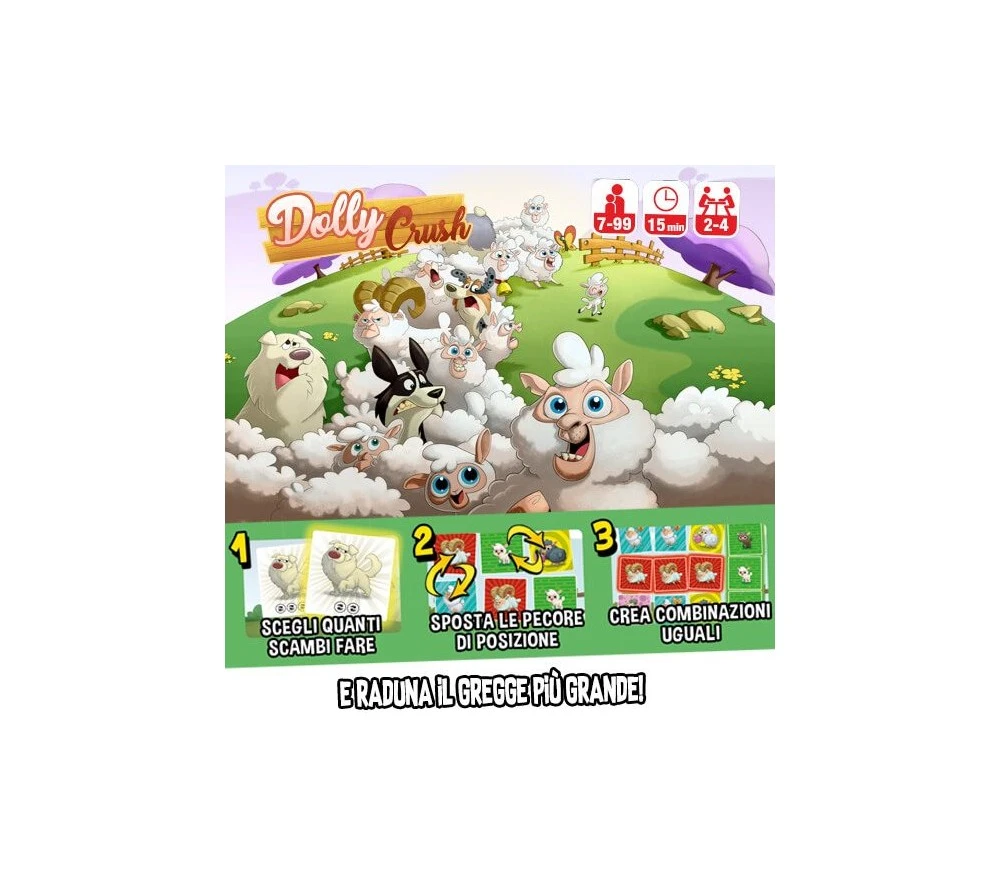 Dolly Crush è un’avvincente e “soffice” sfida al gregge più grande. Scambia le pecore fra loro con l’aiuto dei cani per ottenere file e colonne dello stesso tipo. Arricchisci le combinazioni con le rare pecore nere e crea il gregge più numeroso!