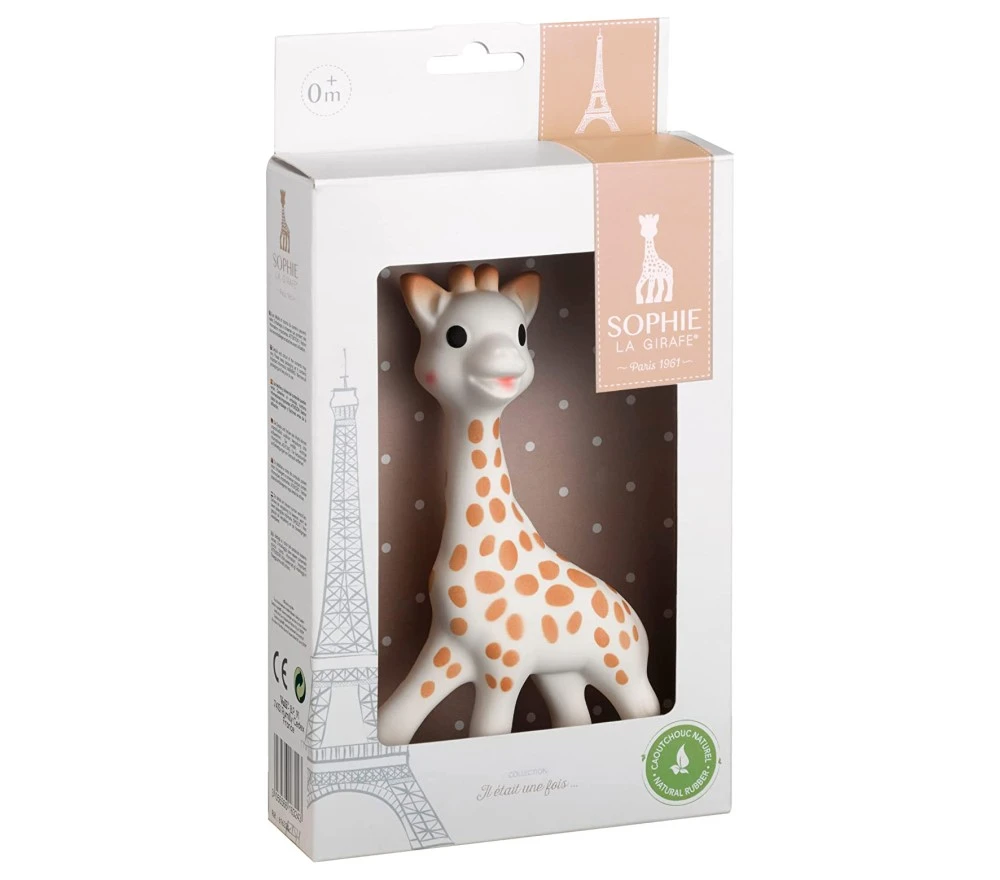 La giraffa Sophie è un gioco che dal 1961 ha conquistato bimbi e mamme in tutto il mondo. E’ un pupazzo in gomma naturale al 100%, colorato con colori alimentari e quindi sicurissimi, che stimola tutti e cinque i sensi dei più piccoli. Adatto dalla nascita, accompagnerà il tuo bimbo per tanto tempo!
