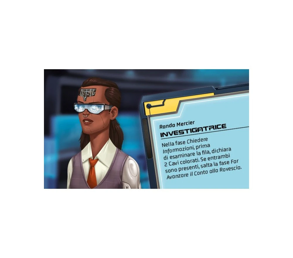 Siete bloccati dentro il laboratorio con la bomba. L’unico giocatore in salvo è quello che rappresenta l’Unità di Crisi, però deve darvi le informazioni corrette per poter procedere: davanti a voi ci sono delle tessere coperte che nascondono cavi di diversi colori… oppure materiale esplosivo pericolosissimo! Solo il giocatore dietro lo schermo ha modo di visualizzare la sequenza di colori e darvi alcune informazioni, controllando una riga o una colonna scelta dai giocatori. L’Unità di Crisi guarda in segreto le tessere e vede cosa c’è sul lato coperto, poi da dietro lo schermo tira fuori una serie di cavi in ordine sparso. Quale sarà la sequenza giusta? È possibile ottenere l’aiuto di alcuni Consulenti, per facilitarsi il lavoro, ma alla fine sarà uno di voi a decidere il cavo da tagliare, e il peso di questa responsabilità può determinare il destino di tutti quanti!
