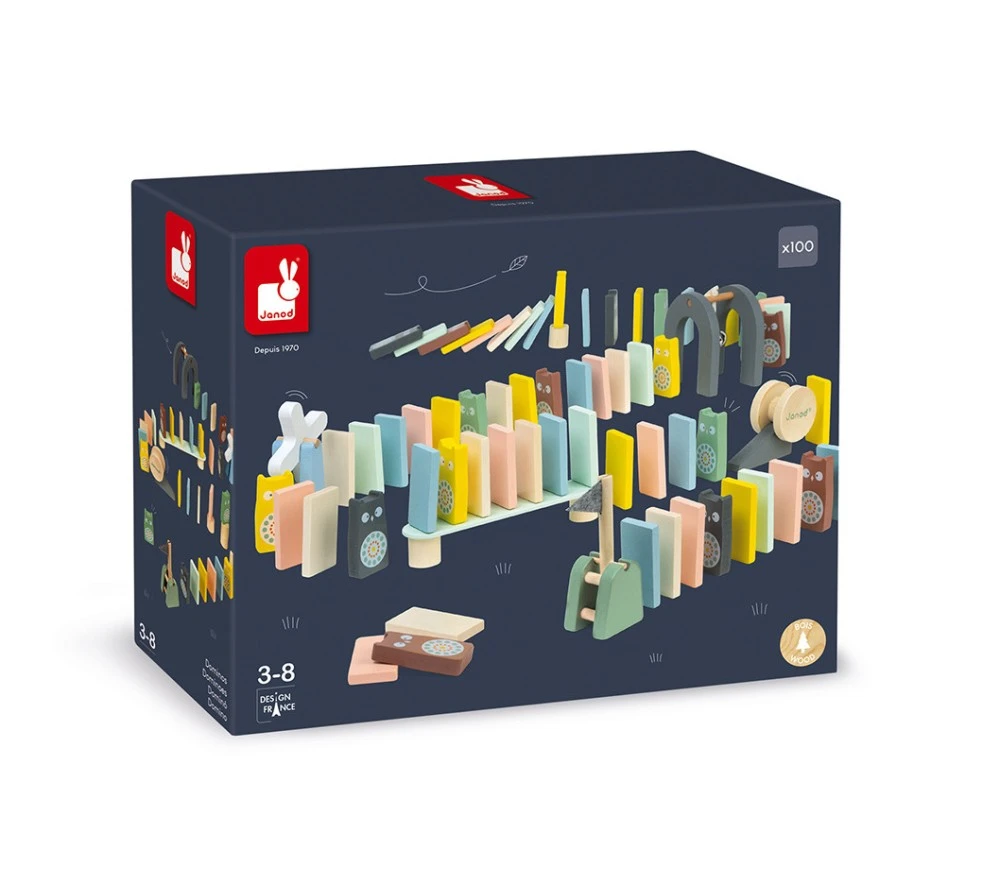 Un gioco classico che non smette di divertire e stimolare la fantasia dei bimbi. Con i 100 pezzi a disposizione creeranno sempre nuovi incredibili percorsi, sviluppando pazienza e manualità. Questo gioco fa parte della nuova linea Sweet Coocon di Janod, ispirata al design nordico e moderno. Da 3 anni in su.