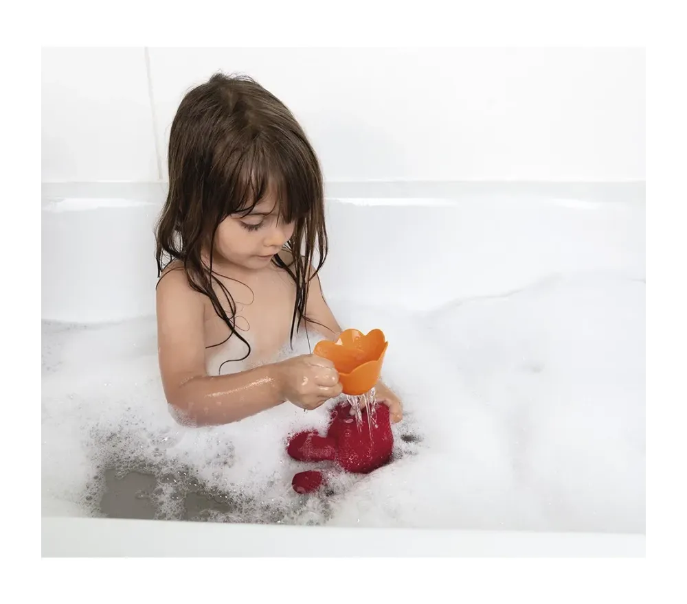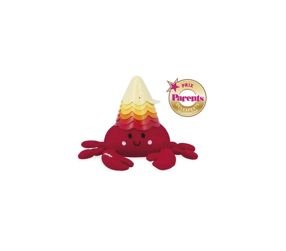 Il bagnetto sarà super divertente con la compagnia di Bernard il granchio! Questo granchietto è una spugna e ha come copricapo 6 tazze colorate (realizzate in un materiale che deriva dal grano), con fori di forme varie, per un effetti pioggia diversi!