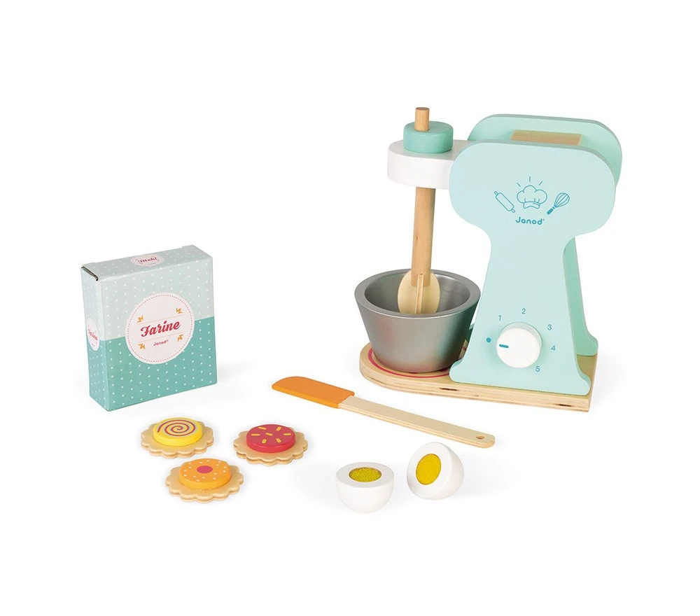 Con questo robot in legno i pasticcieri in erba potranno preparare tante prelibatezze! Mescolare le uova, aggiungere la farina e via…pronti ad impastare! 6 accessori inclusi.