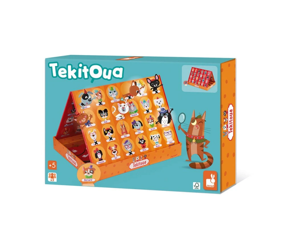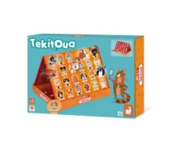 Attraverso le giuste domande bisogna indovinare qual’è l’animale dell’avversario, eliminando uno dopo l’altro gli animali errati. Il primo che indovina vince! Il gioco ha degli adesivi riposizionabili per segnare man mano i personaggi da scartare, 48 carte e due supporti in legno per le carte. Da 5 anni in su.