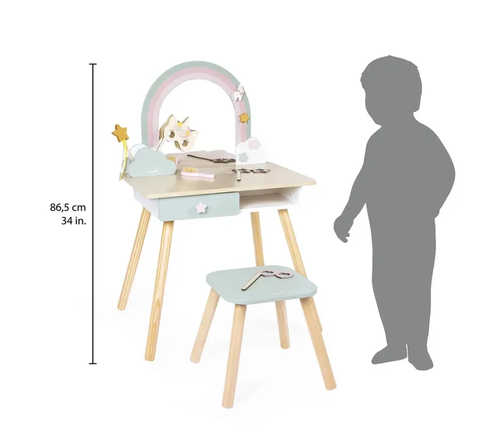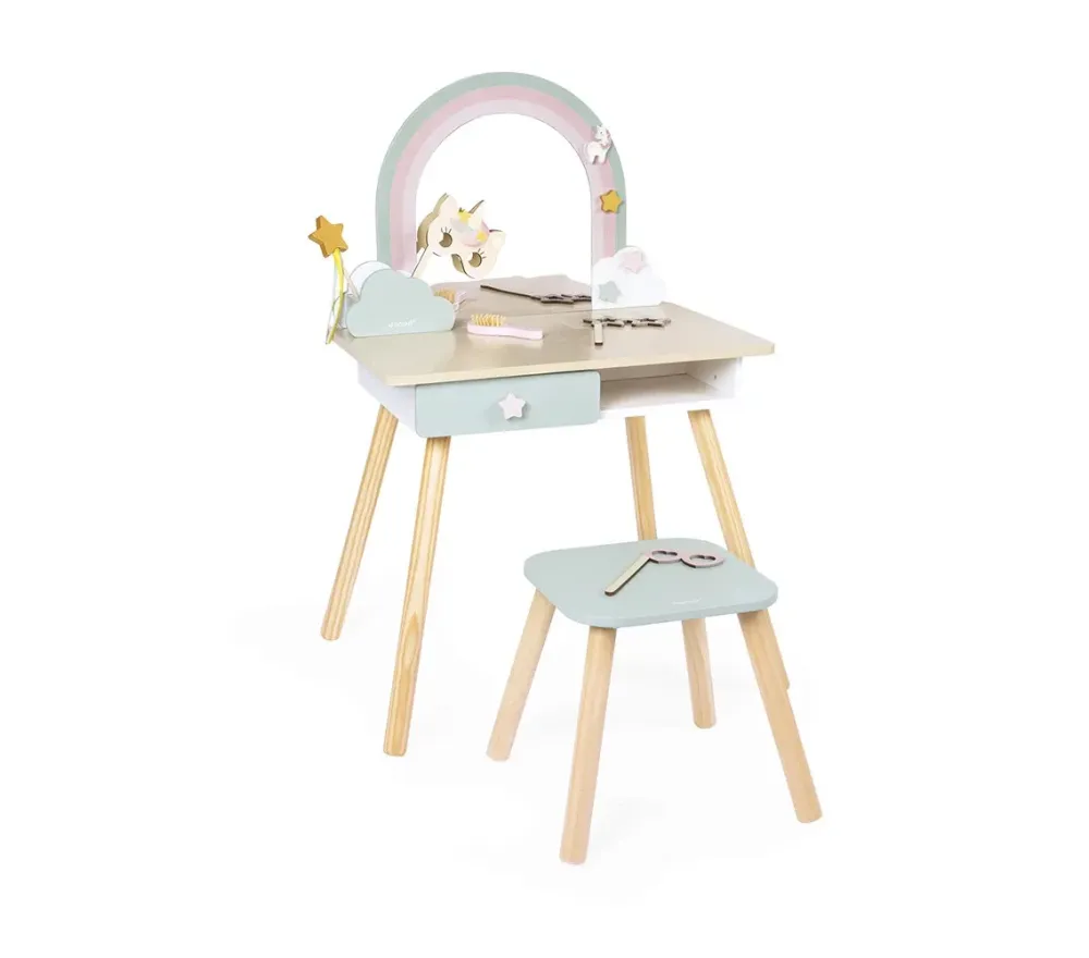 Una toeletta che fa sognare! Con la toeletta unicorno, i bambini possono imitare i grandi e immaginare storie magiche