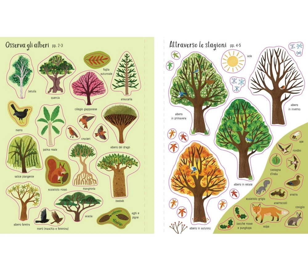 Mangrovie e palme, ficus e querce sono solo alcune delle specie di alberi che abitano il nostro pianeta. Grazie a questo libro con adesivi i più piccoli non solo miglioreranno la loro motricità fine ma in più impareranno a distinguere un albero dall’altro guardandone le foglie, i semi e i frutti.