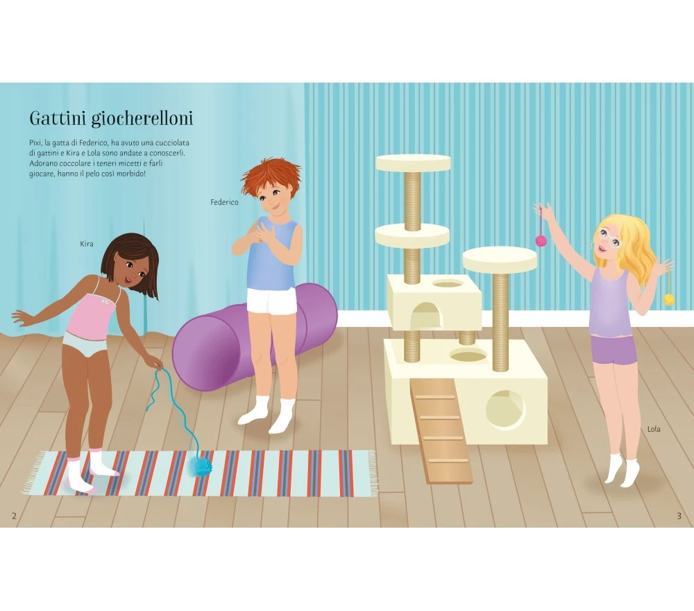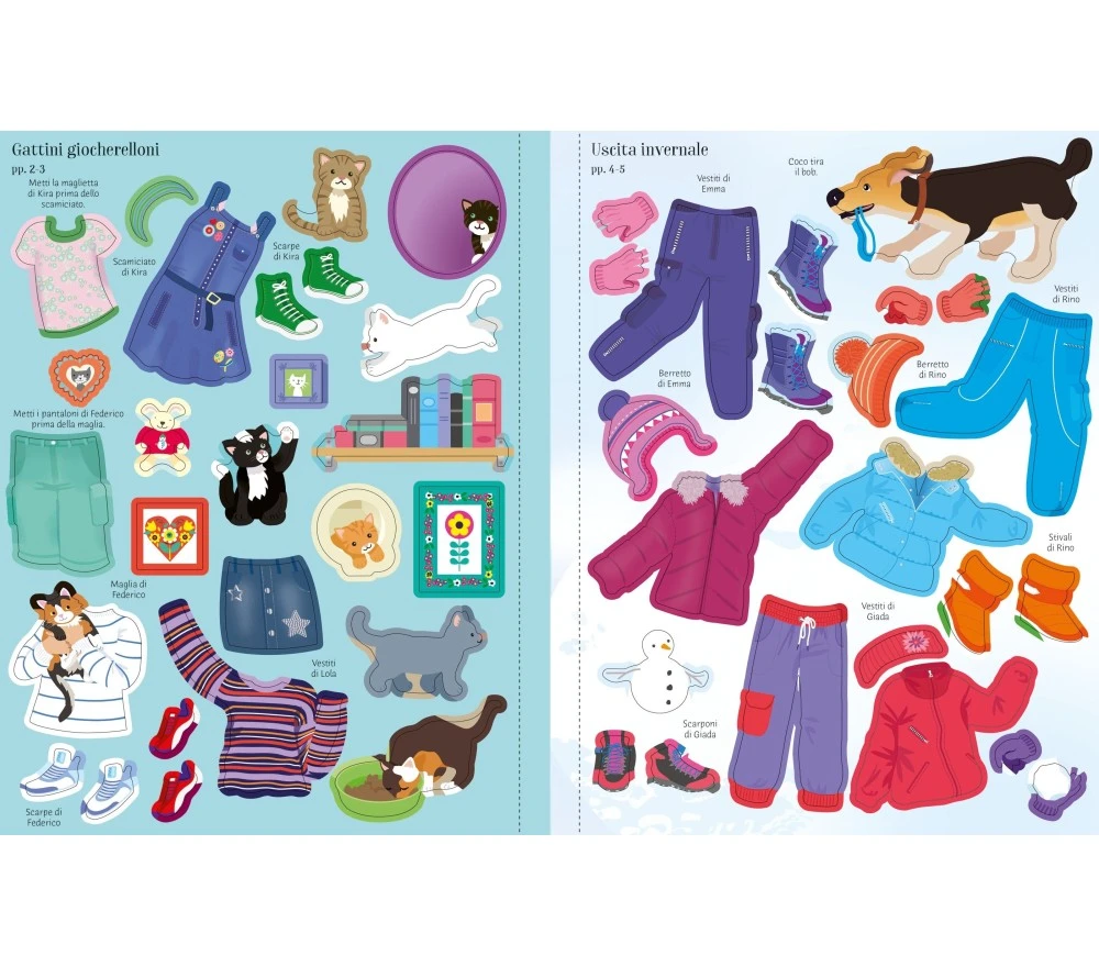Alcune li hanno, altre li desiderano, ma tutte le bamboline adorano gli animali. Un titolo della collana ‘Vesto le bamboline’ dedicato ai nostri amici a quattro zampe, e non solo, con tante scenette da completare con gli adesivi inclusi.