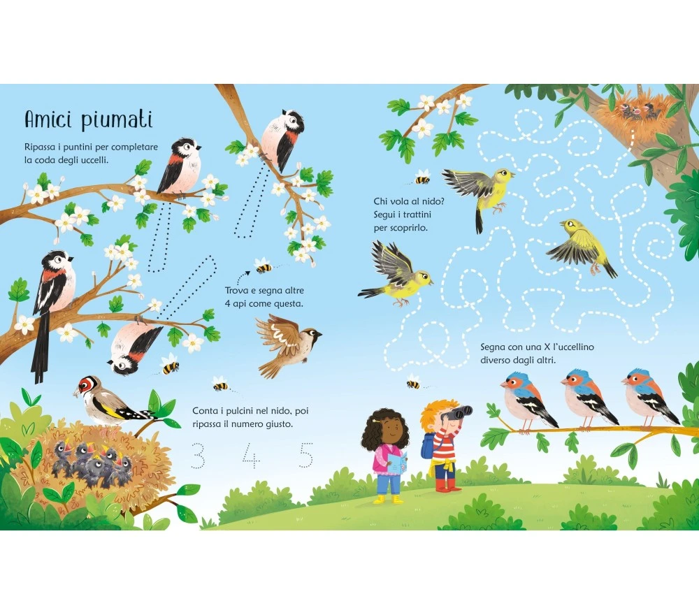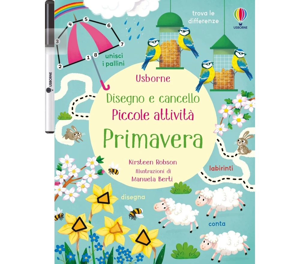 Labirinti, unisci i pallini, trova le differenze e tanti altri giochini ispirati al periodo primaverile per esercitarsi a impugnare correttamente la penna in allegria. Grazie alle pagine plastificate è possibile svolgere le attività più e più volte.