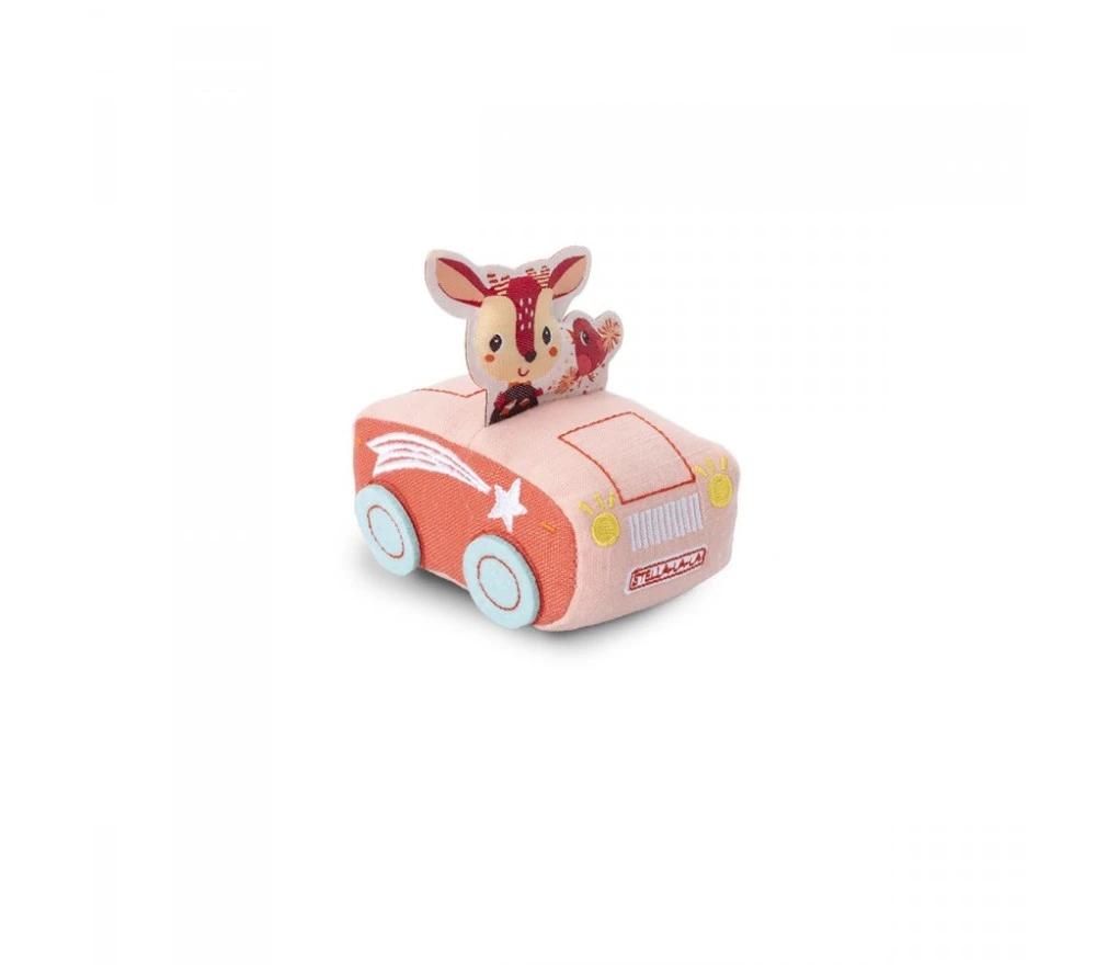 Una simpaticissima auto in morbida stoffa, con meccanismo a frizione (o retrocarica) che farà sfrecciare il cervo Stella a tutta velocità!