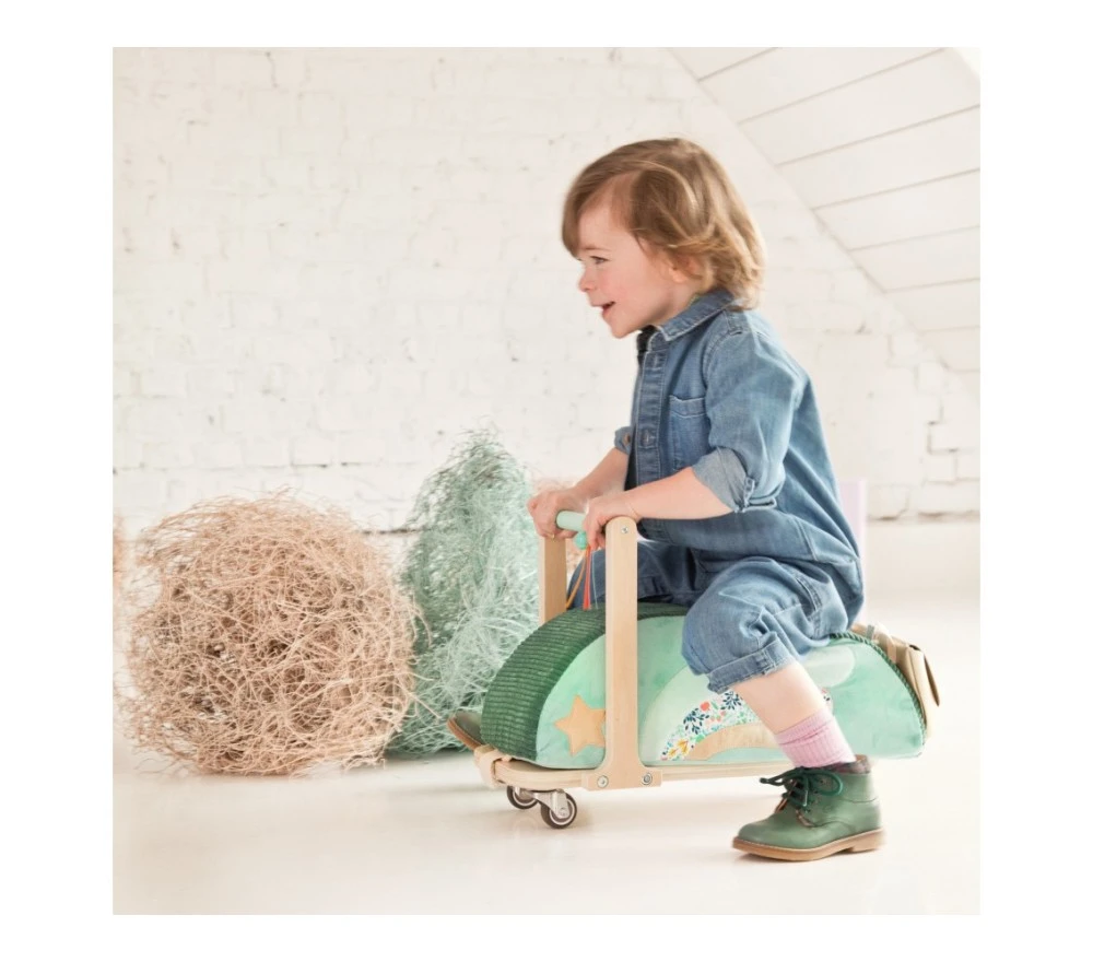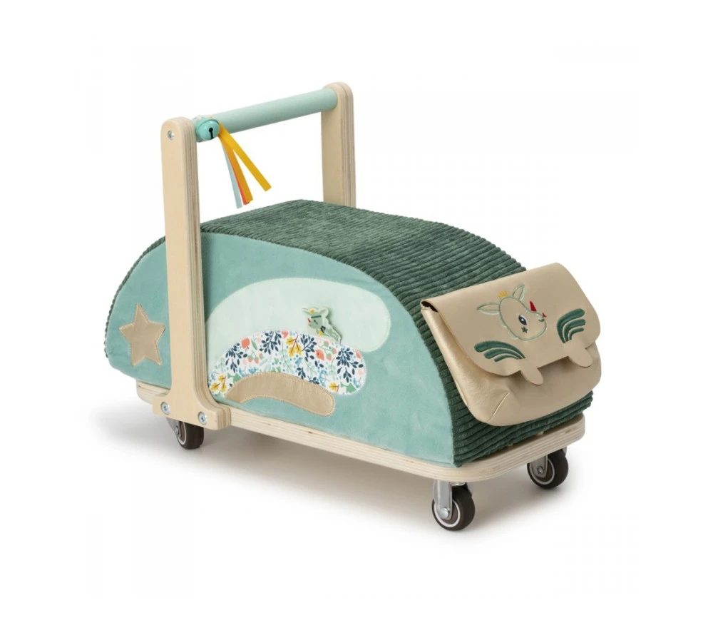 Seduti comodamente su questo primo passi cavalcabile morbido, i piccoli possono correre in tutta sicurezza per la stanza. La piccola borsa è removibile. Quando il bambino diventa troppo grande per il primo passi cavalcabile, il sedile può essere rimosso e utilizzato come pouf!