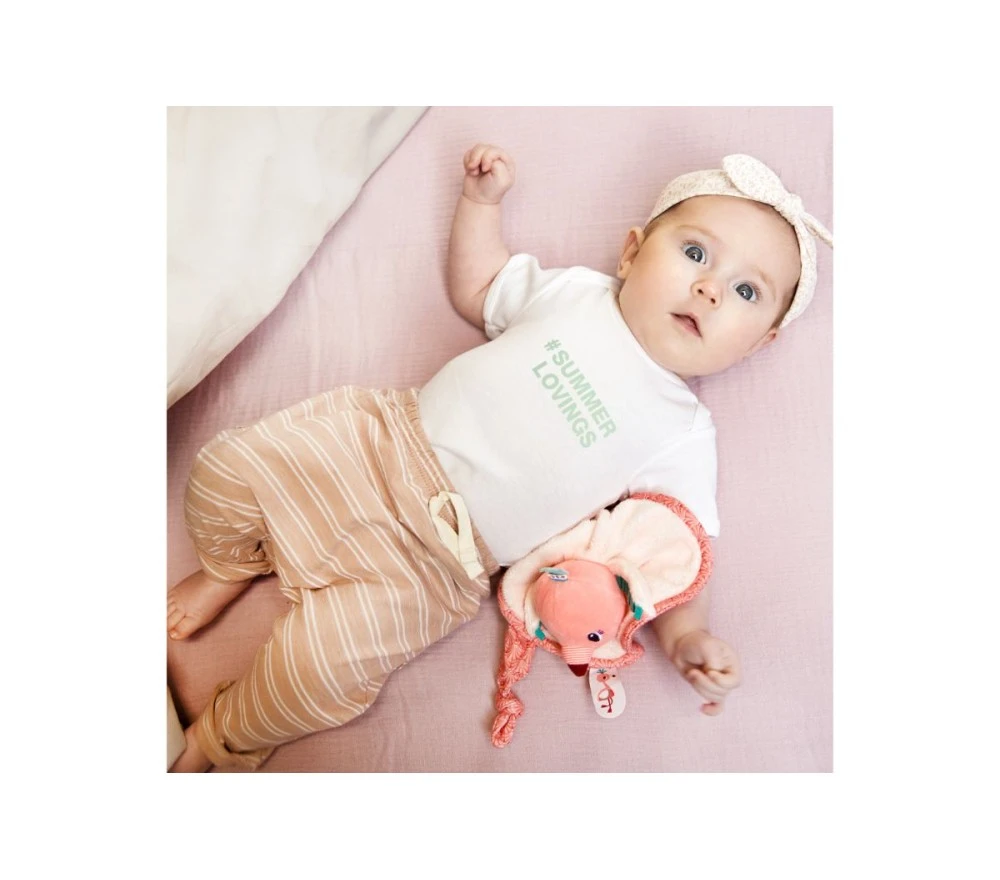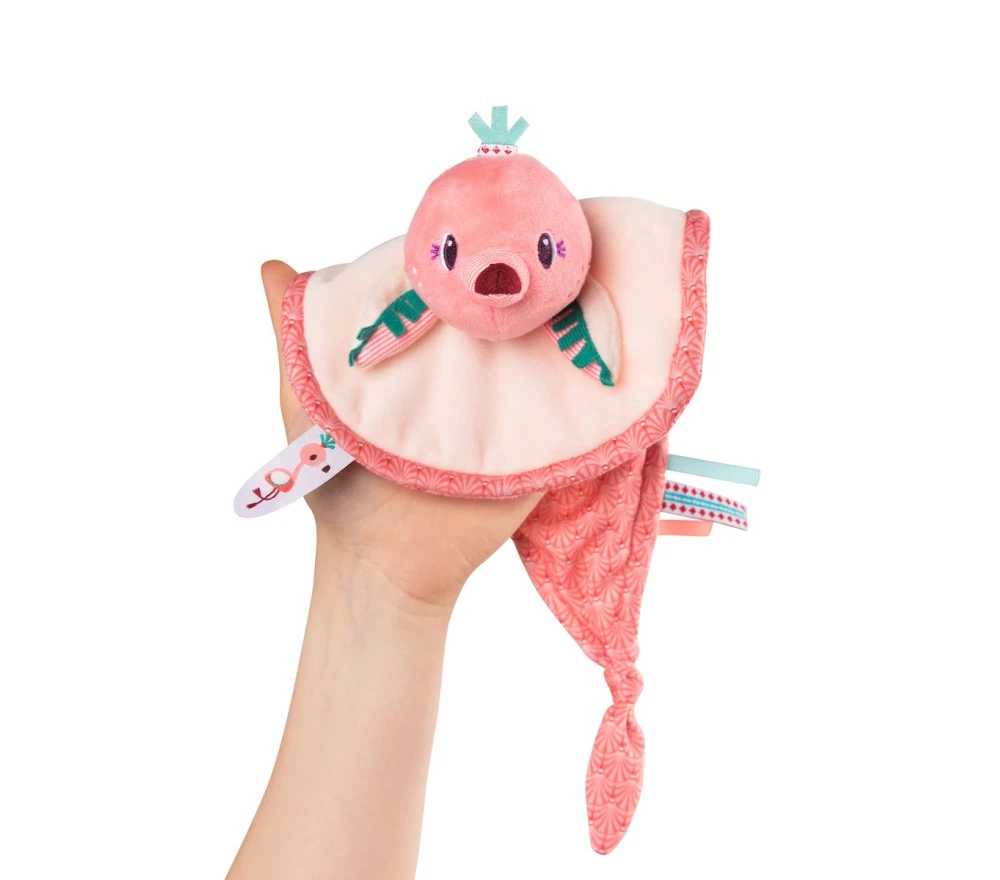 Questo doudou a forma di Anais il fenicottero di Lilliputiens è originale e morbidissimo, lavabile a 30° e ha anche un lembo da annodare, perfetto per tenere il ciuccio o da mordicchiare. La testa dell’animale ha spazio per infilare un dito e diventare così una marionetta con cui intrattenere i bimbi.