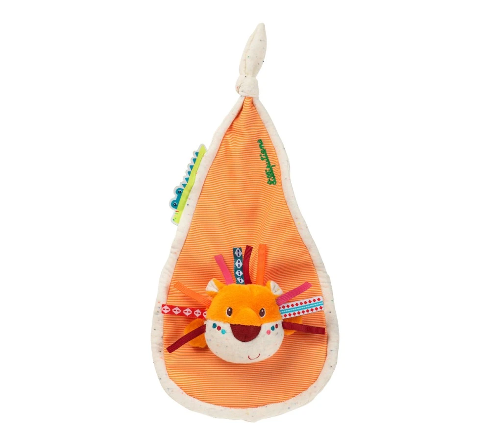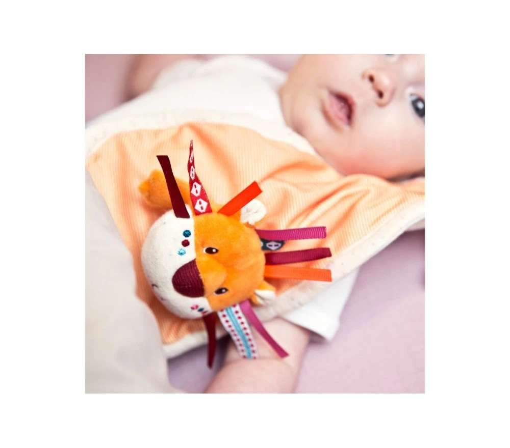 Questo doudou a forma di Jack il leone di Lilliputiens è originale e morbidissimo, lavabile a 30° e ha anche un lembo da annodare, perfetto per tenere il ciuccio o da mordicchiare. La testa dell’animale ha spazio per infilare un dito e diventare così una marionetta con cui intrattenere i bimbi.