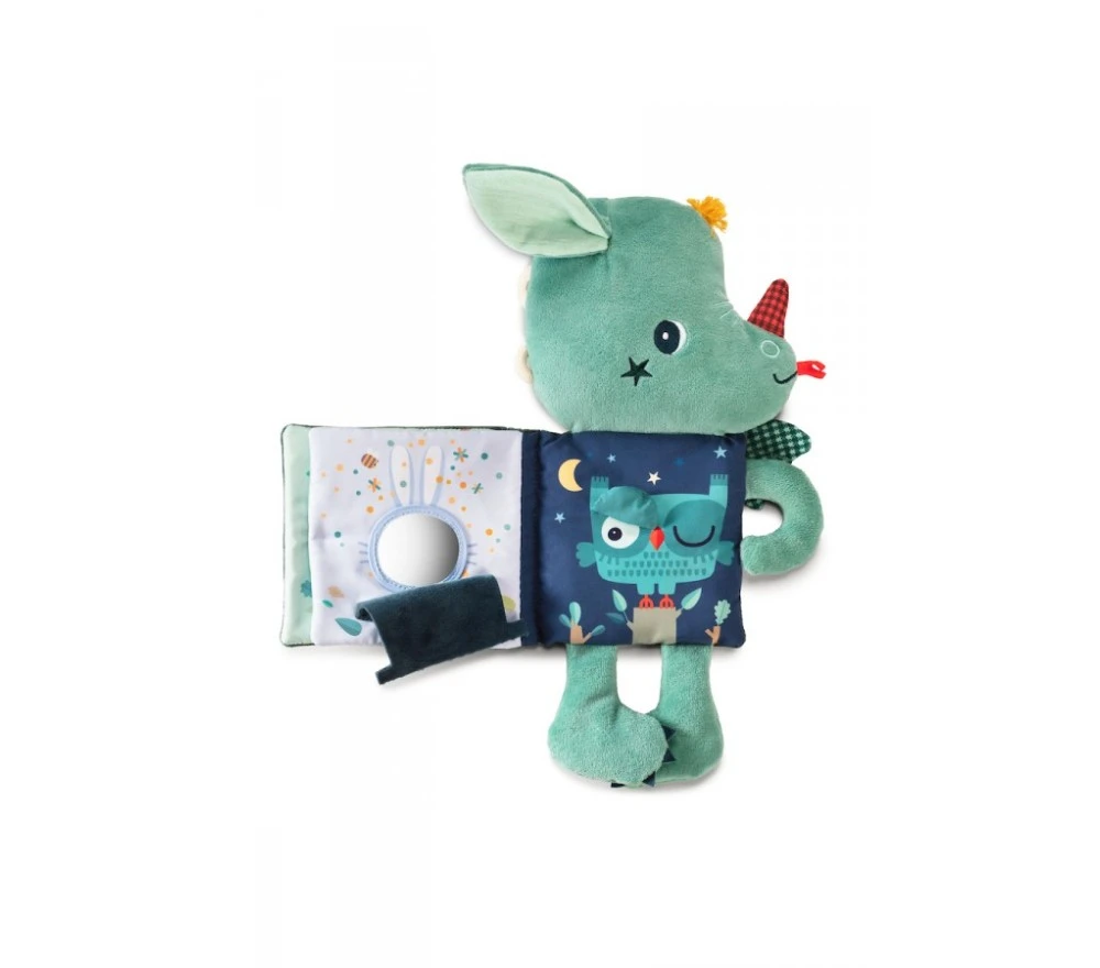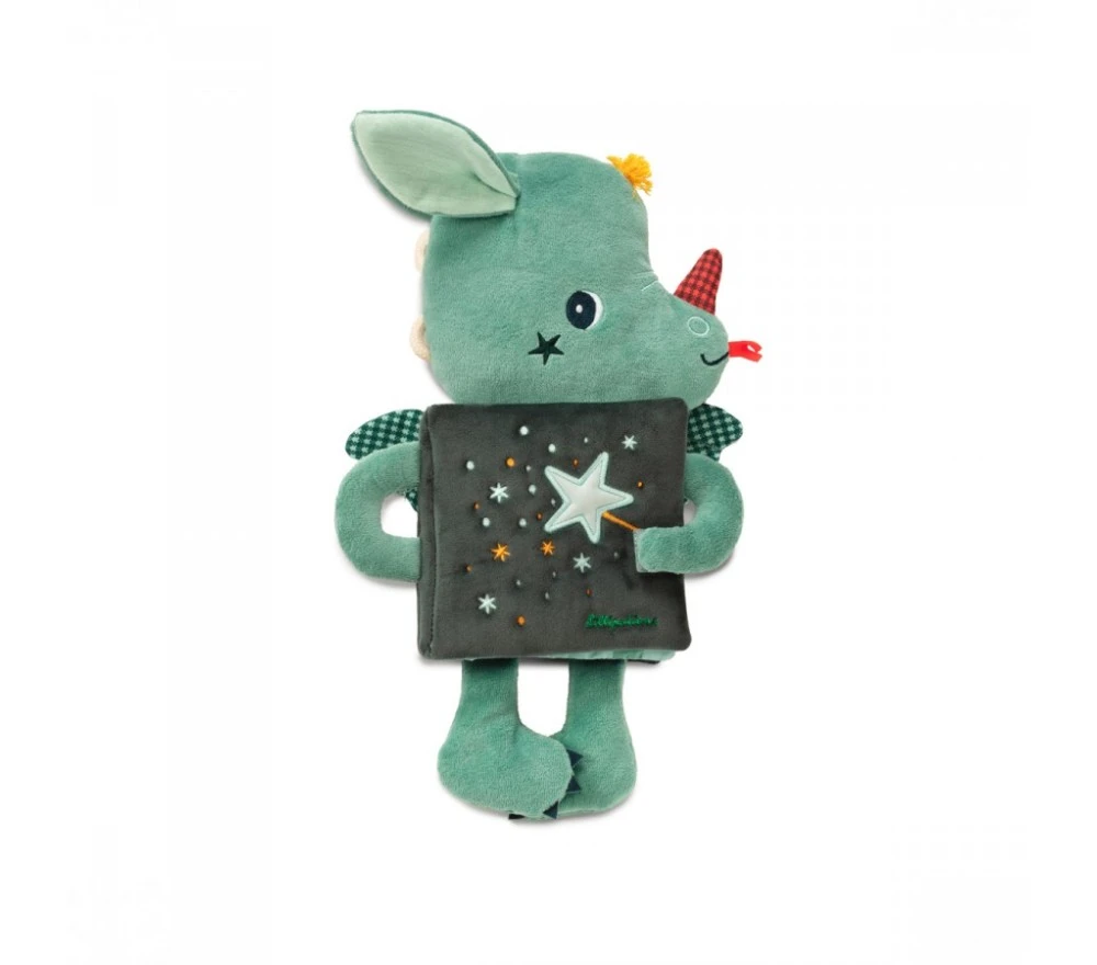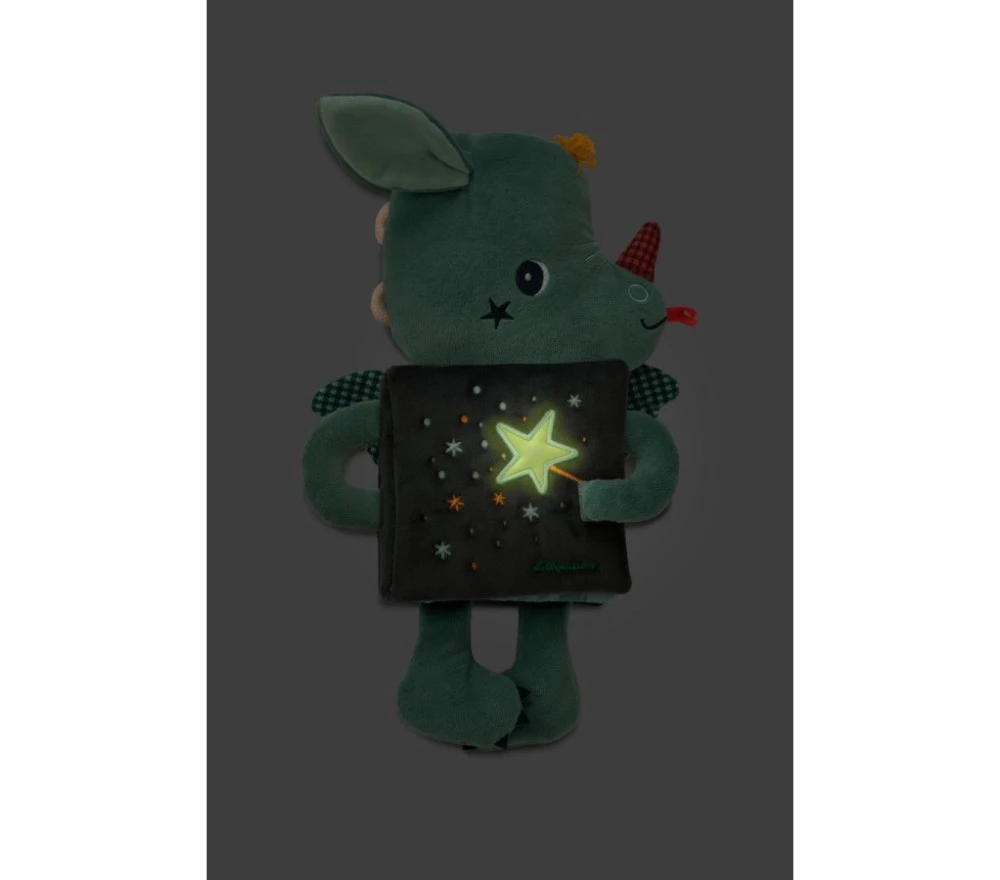 Joe il drago in versione libro! Questo gioco ha il musino e la gambe di Joe e al centro un libro morbido con texture diverse, rumori fruscianti e bellissime illustrazioni da osservare. Ma le sorprese non finiscono qui! Al buio la copertina è fosforescente, per accompagnare l’addormentamento dei bimbi!
