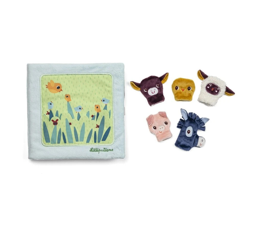 Con da 5 marionette da dito, questo libro di stoffa stimola la fantasia ed il racconto. I bimbi inoltre sviluppano la vista, le capacità motorie e la logica.