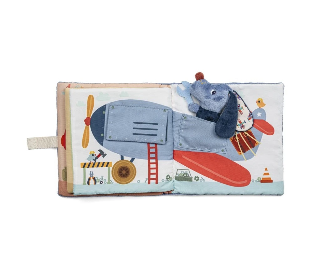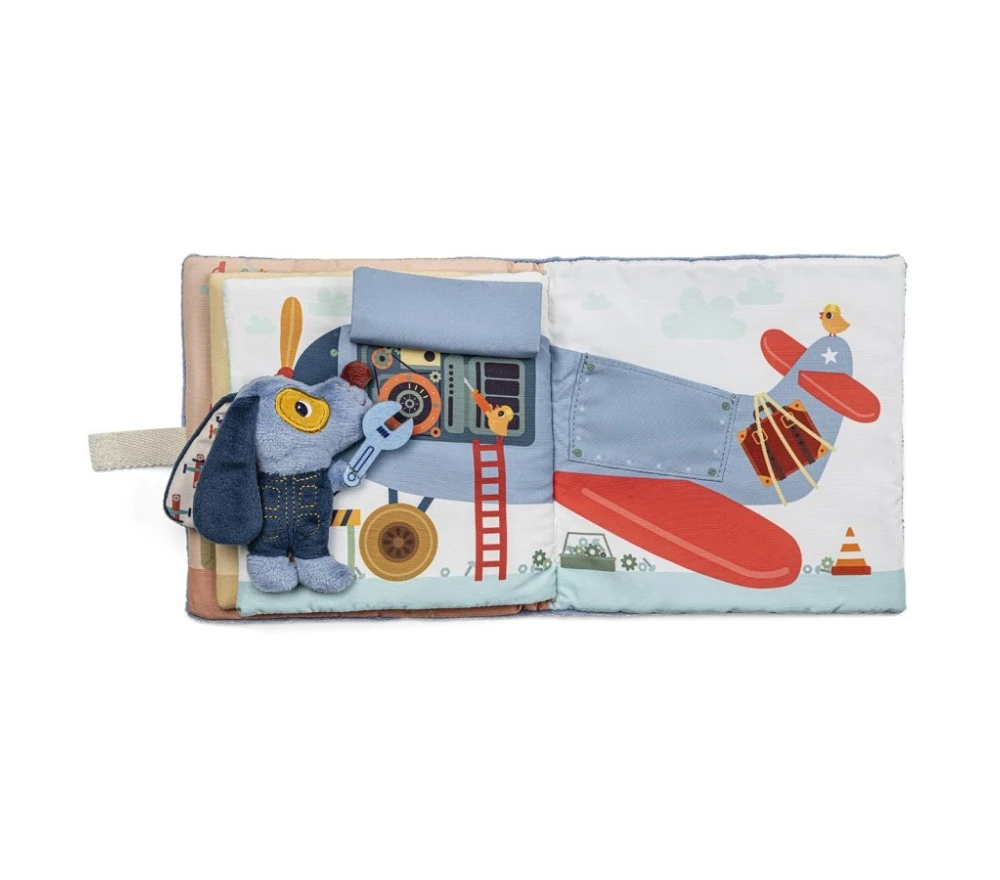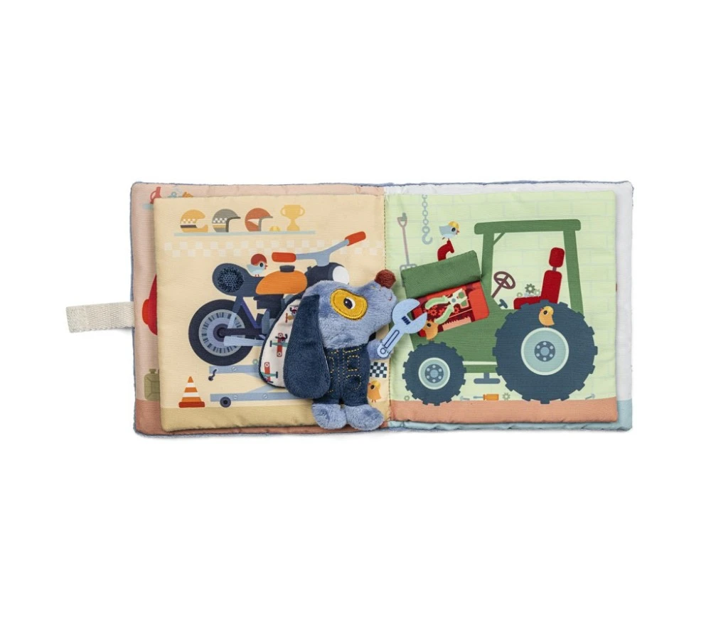 « Uno strano rumore sotto il cofano del trattore? Darò un’occhiata!I bimbi accompagneranno il piccolo peluche Jules da una pagina all’altra, per riparare una moltitudine di macchine.