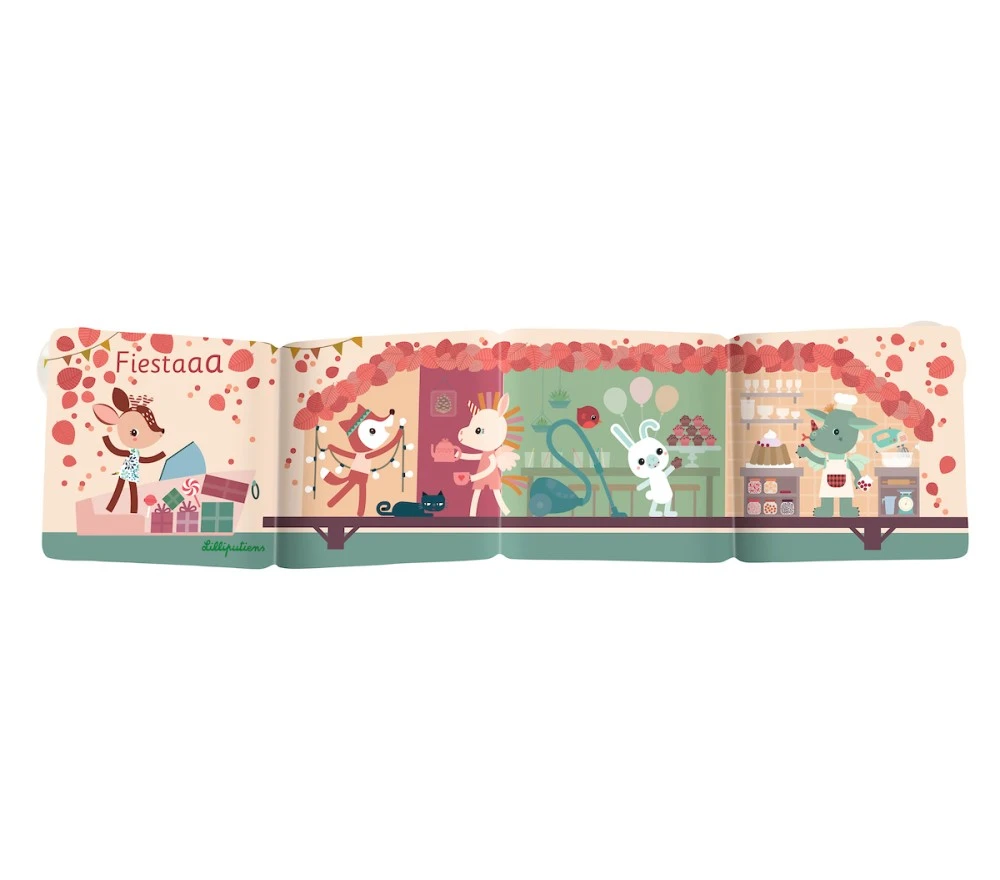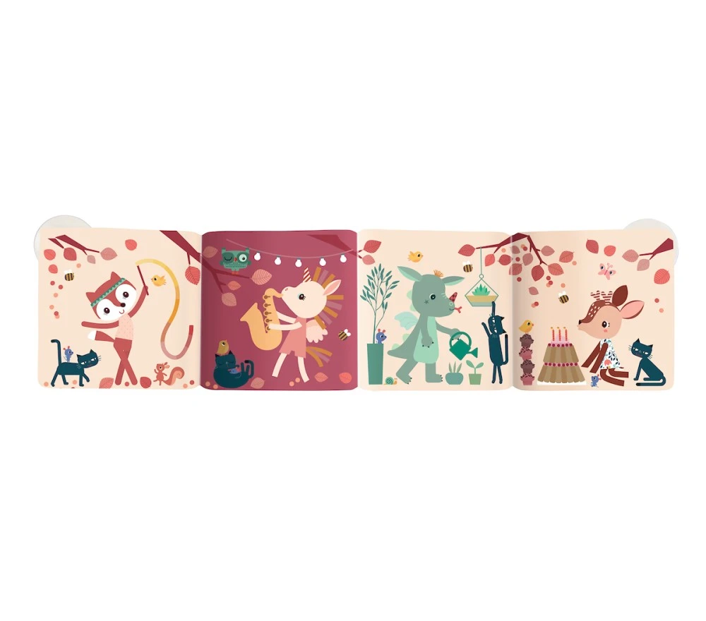 Un simpatico libro che si apre a fisarmonica e diventa un pannello da poter fissare alle piastrelle del bagno con le ventose. Il pannello è magico: con l’acqua calda (almeno a 32°C) rivela immagini e dettagli tutti da scoprire! Grazie alle illustrazioni sarà possibile raccontare storie e giocare a trovare gli animali nascosti.