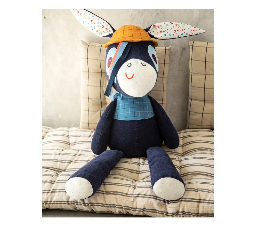 Ignace l’asinello, in versione peluche gigante è un tenerissimo amico per ogni bimbo o bimba e un decoro allegro ed originale per la cameretta.