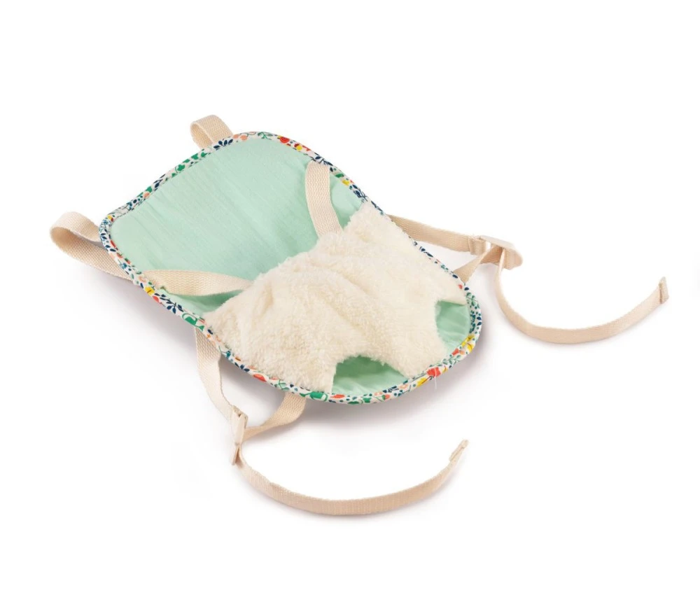 Una morbido zainetto porta bebè perfetto per le bambole Lilliputiens e non solo. Lo zainetto ha spallacci regolabili e una colrata fantasia floreale. Per poter portare in giro il proprio bebè al calduccio!
