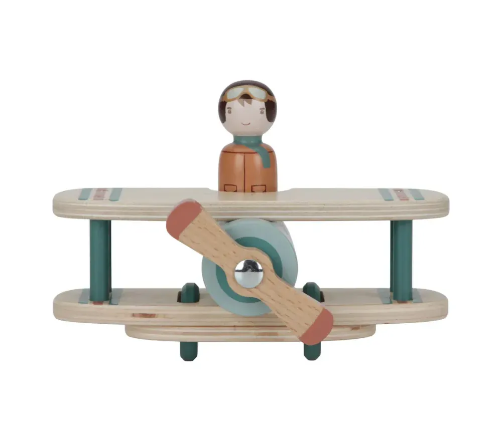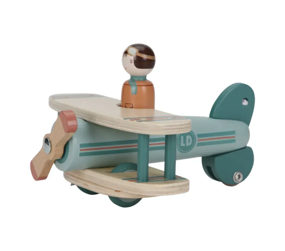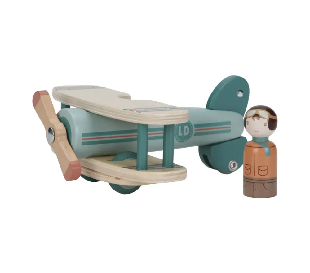 Un fantastico aereo in legno per volare… con la fantasia. La confeziona comprende anche il pilota!