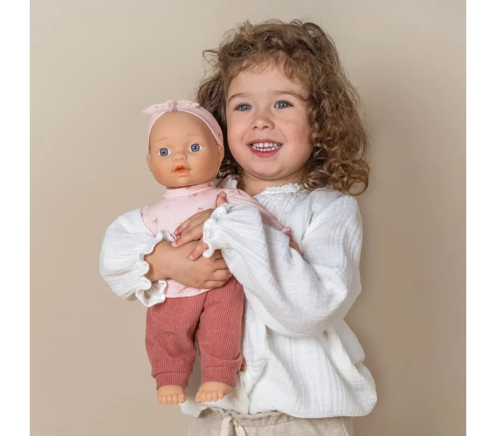 Lily è una dolce bambola con un corpo morbido tutto da abbracciare! Ha degli adorabili vestiti (rimovibili) con una delicata stampa in perfetto stile Little Dutch!