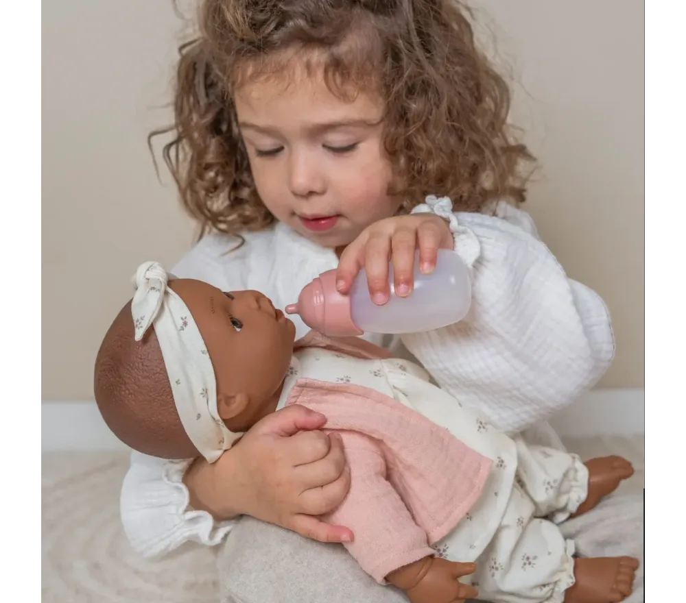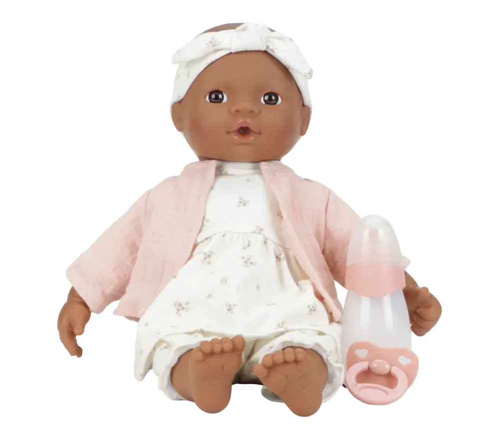 Ha inoltre un ciuccio e un biberon. E’ sicura e certificata sotto i 3 anni, perfetta per essere la prima bambola anche dei più piccoli!