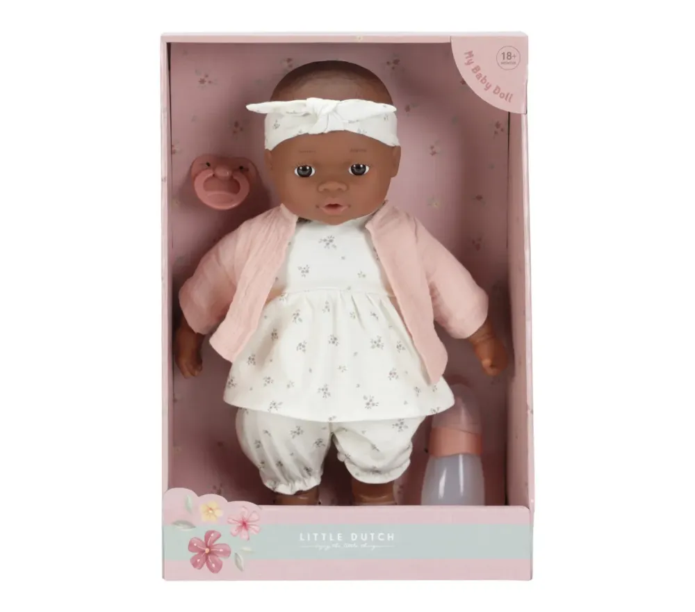 Noa è una dolce bambola con un corpo morbido tutto da abbracciare! Ha degli adorabili vestiti (rimovibili) con una delicata stampa in perfetto stile Little Dutch!