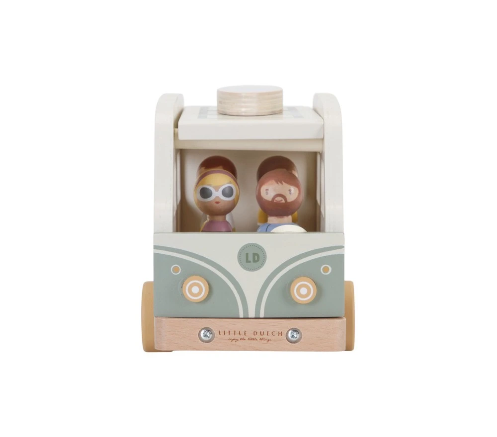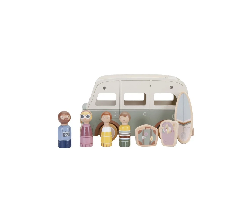 Il camper van per perfetti piccoli surfisti è tra le ultime novità Little Dutch! In legno FSC è compreso anche di una simpatica famigliola e di tre accessori.